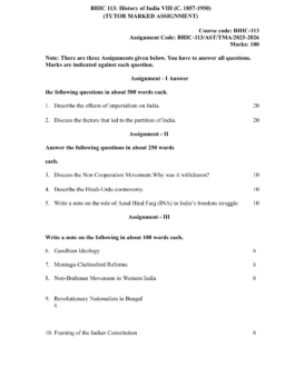 IGNOU BHIC-113 SOLVED ASSIGNMENT 2025-26 ENGLISH MEDIUM