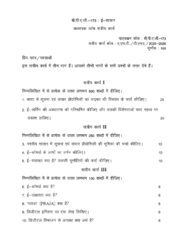 IGNOU BPAG-173 SOLVED ASSIGNMENT 2025-26 HINDI MEDIUM