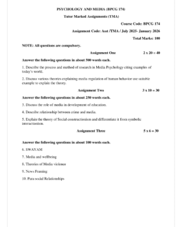 IGNOU BPCG-175 SOLVED ASSIGNMENT 2025-26 ENGLISH MEDIUM