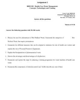 IGNOU BHM-102 SOLVED ASSIGNMENT July 2025 ENGLISH MEDIUM