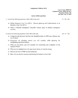 IGNOU MHH-102/AS-4 SOLVED ASSIGNMENT 2025 ENGLISH MEDIUM