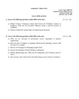 IGNOU MHH-103/AS-7 SOLVED ASSIGNMENT 2025 ENGLISH MEDIUM