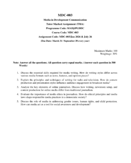IGNOU MDC-003 SOLVED ASSIGNMENT JAN 2026-JULY 2026 ENGLISH MEDIUM