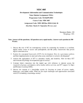 IGNOU MDC-005 SOLVED ASSIGNMENT JAN 2026-JULY 2026 ENGLISH MEDIUM
