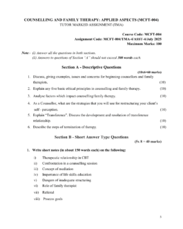 IGNOU MCFT-004 SOLVED ASSIGNMENT JULY 2025 ENGLISH MEDIUM