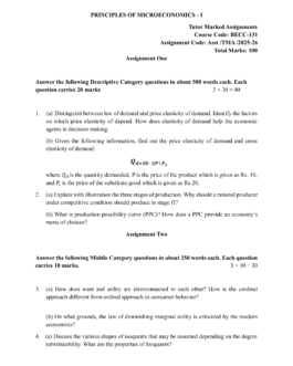 IGNOU BECC-131 SOLVED ASSIGNMENT 2025-26 ENGLISH MEDIUM