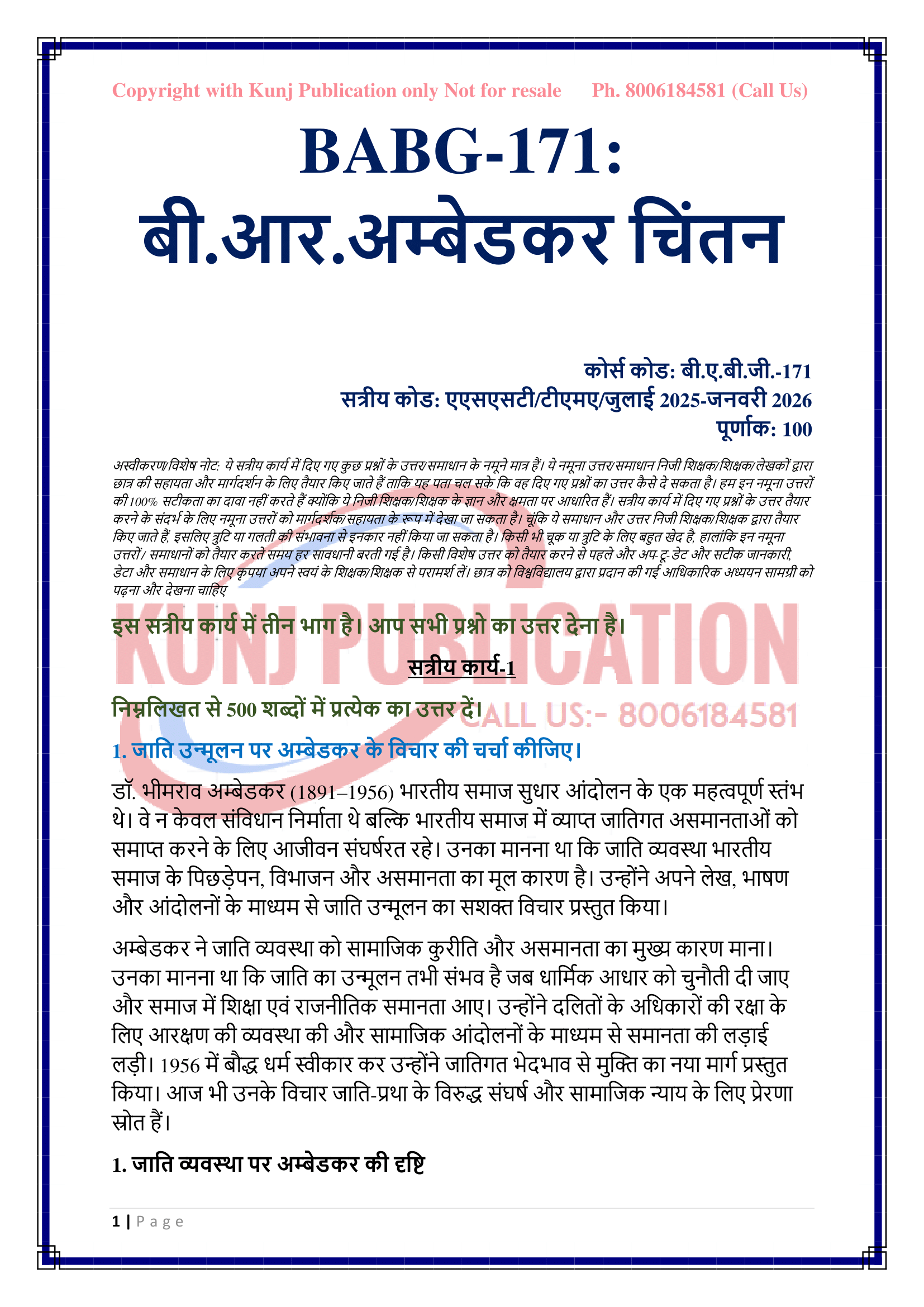 IGNOU BABG-171 SOLVED ASSIGNMENT 2025-26 HINDI MEDIUM