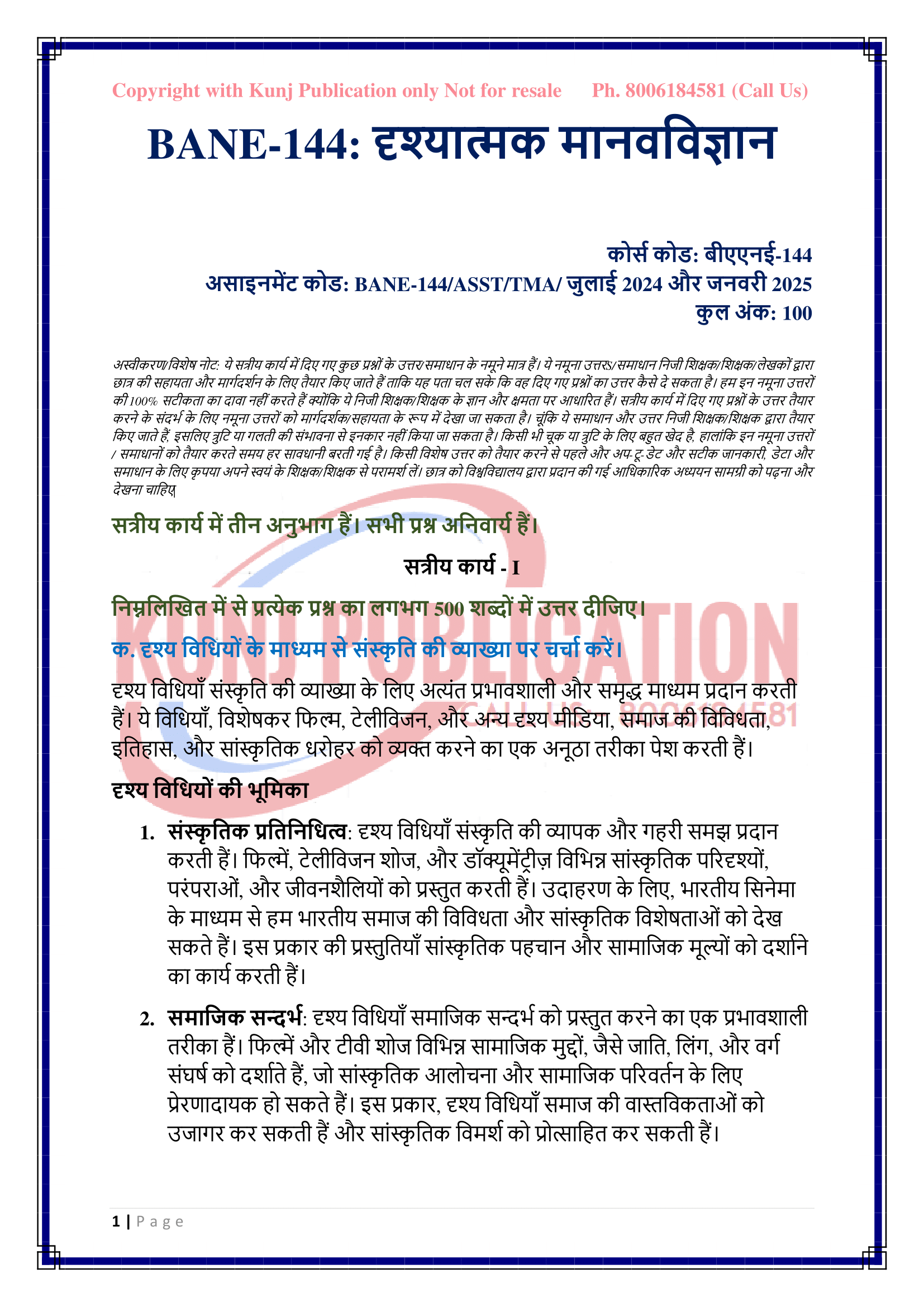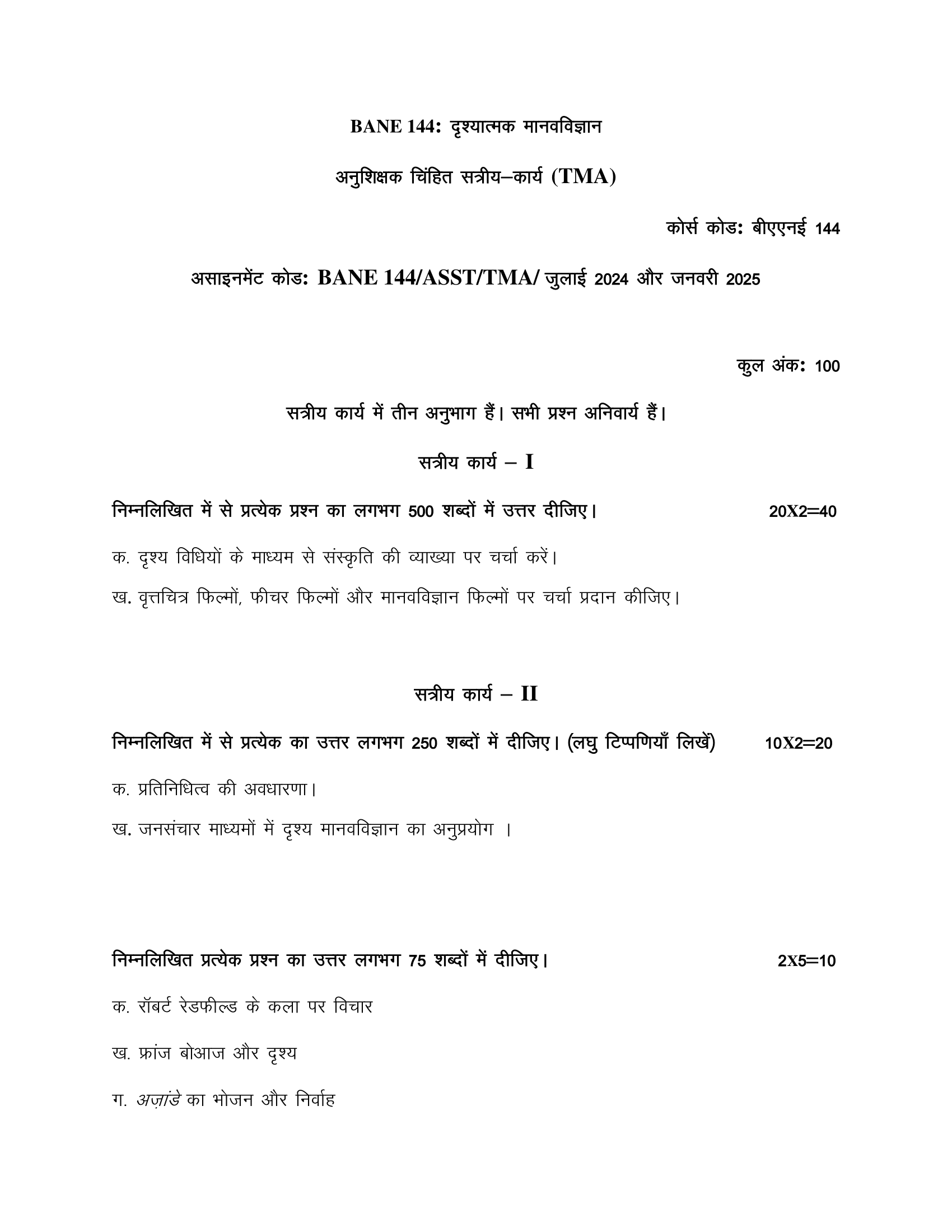 IGNOU BANE-144 SOLVED ASSIGNMENT 2024-25 HINDI MEDIUM