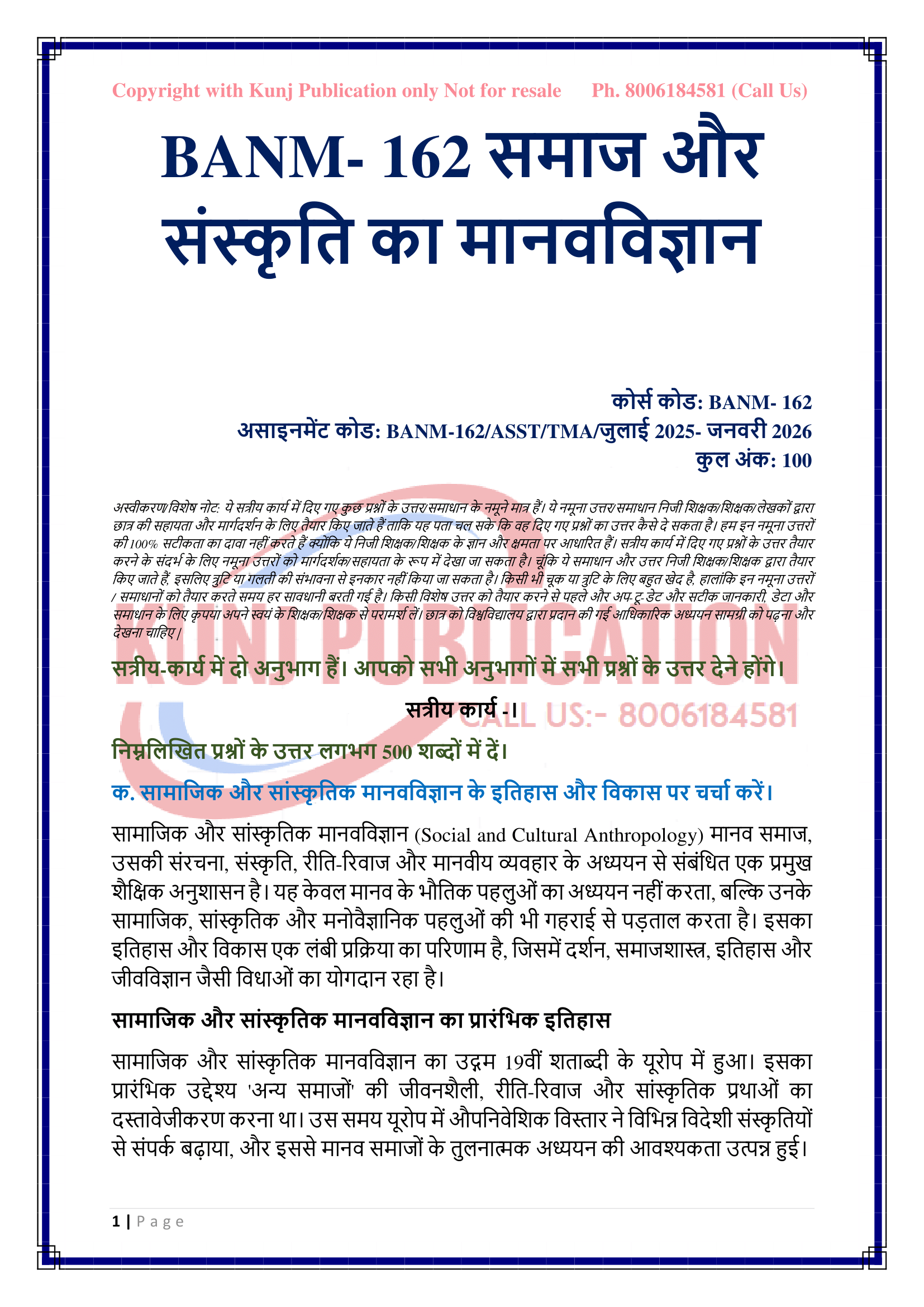 IGNOU BANM-162 SOLVED ASSIGNMENT 2025-26 HINDI MEDIUM