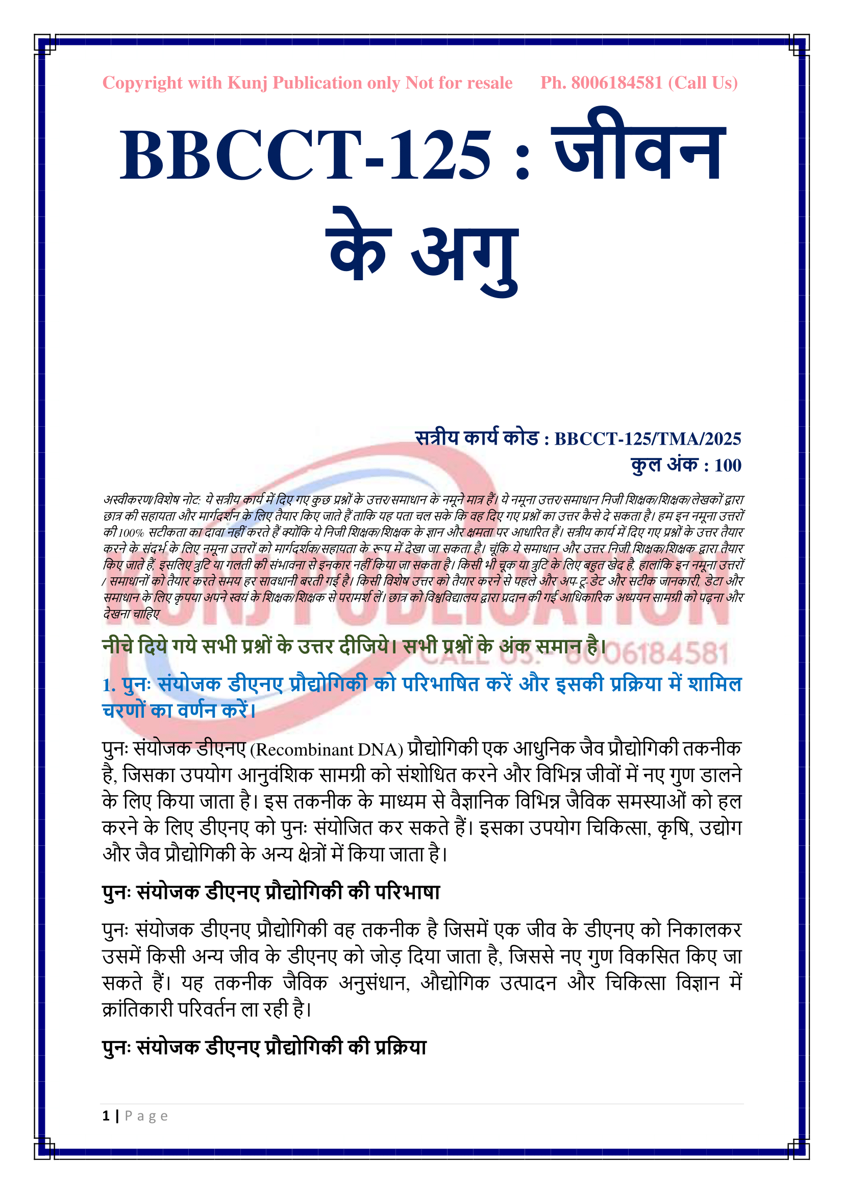 IGNOU BBCCT-125 SOLVED ASSIGNMENT 2025 HINDI MEDIUM