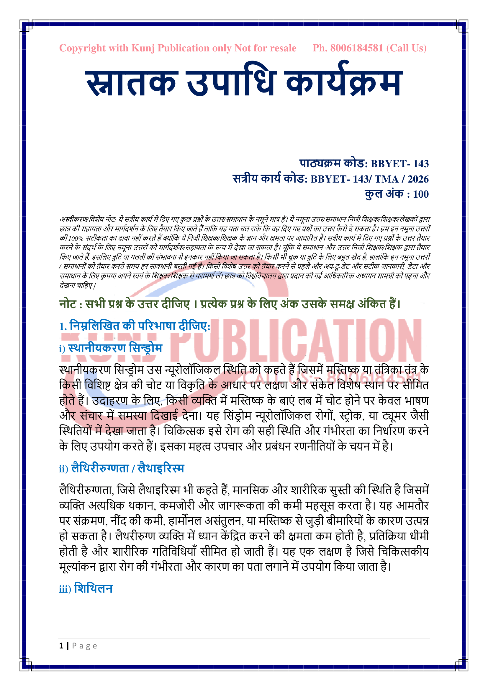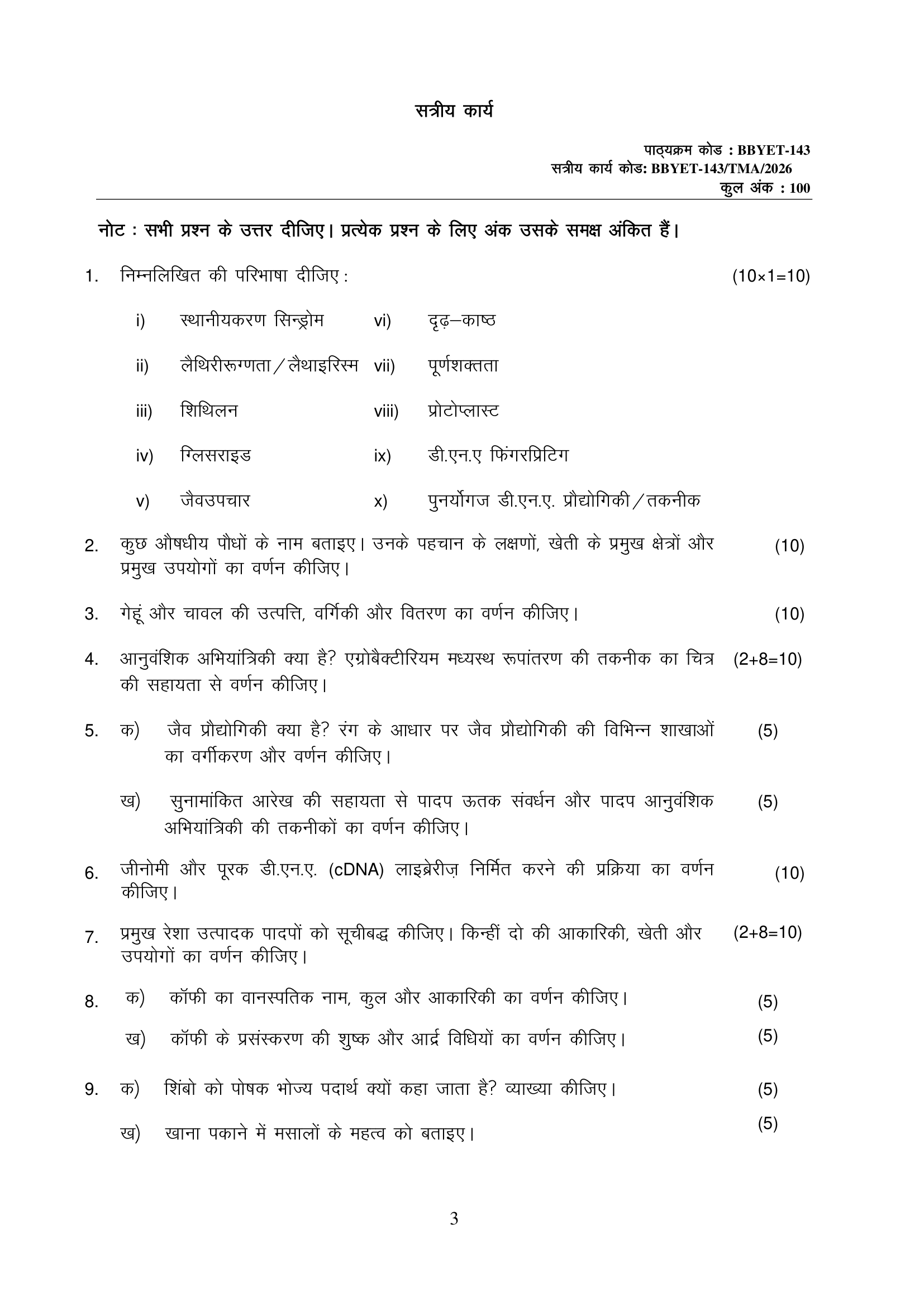 IGNOU BBYET-143 SOLVED ASSIGNMENT 2026 HINDI MEDIUM