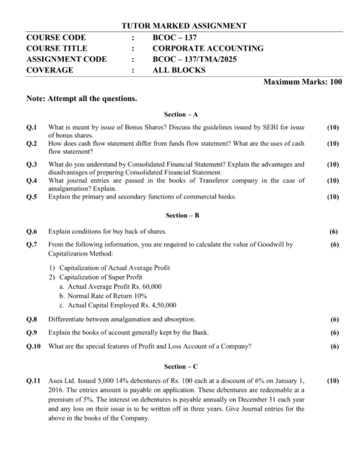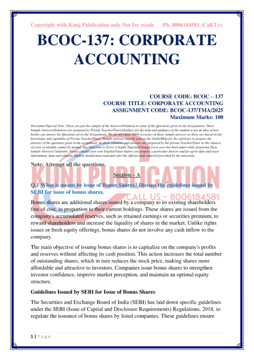 IGNOU BCOC-137 SOLVED ASSIGNMENT 2025 ENGLISH MEDIUM