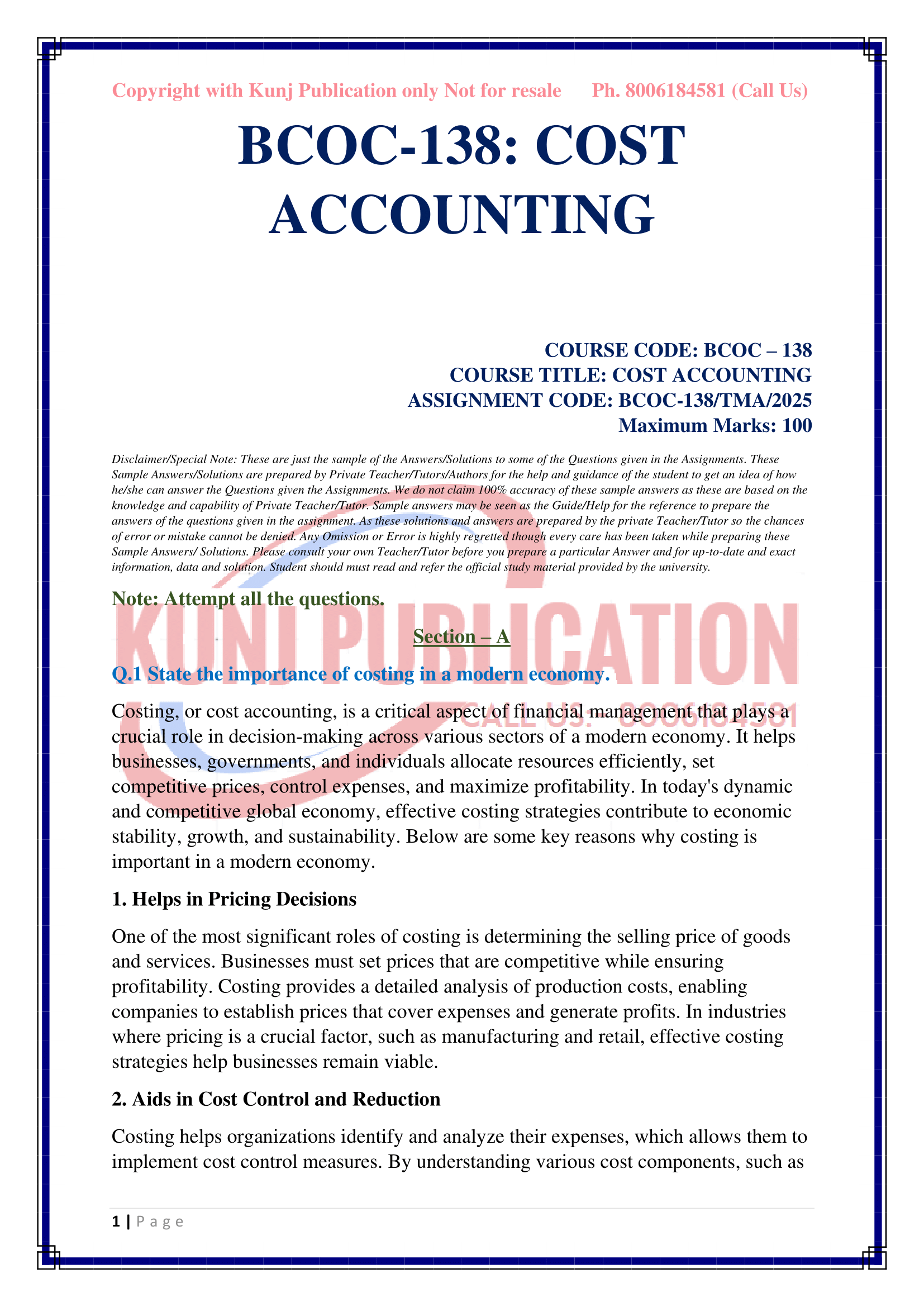 IGNOU BCOC-138 SOLVED ASSIGNMENT 2025 ENGLISH MEDIUM