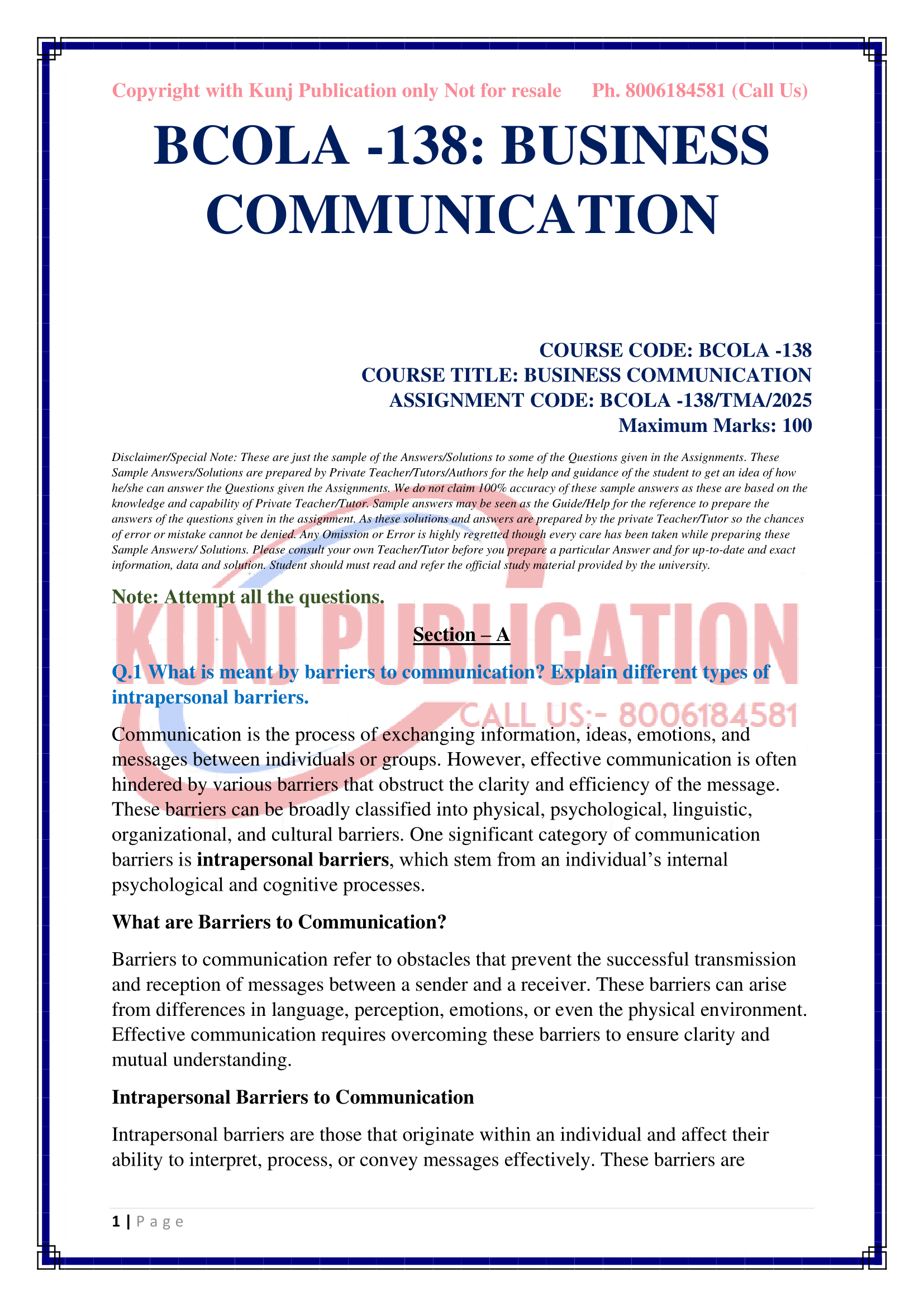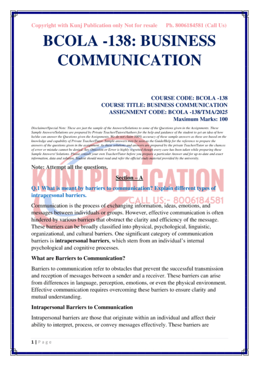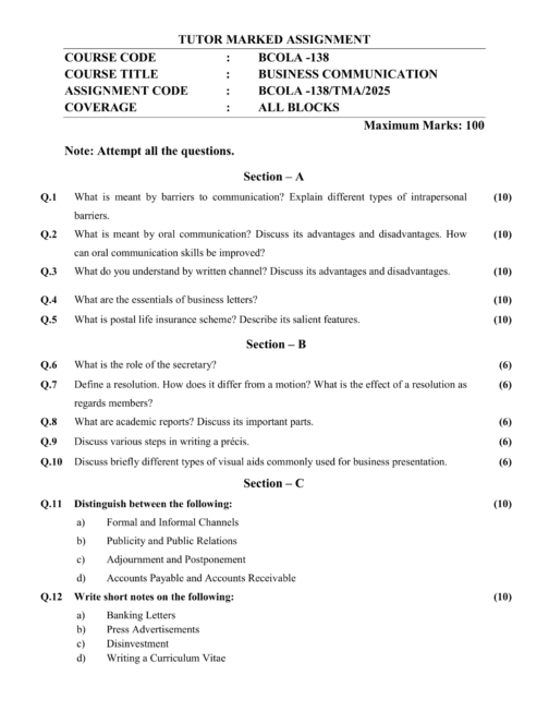 IGNOU BCOLA-138 SOLVED ASSIGNMENT 2025 ENGLISH MEDIUM