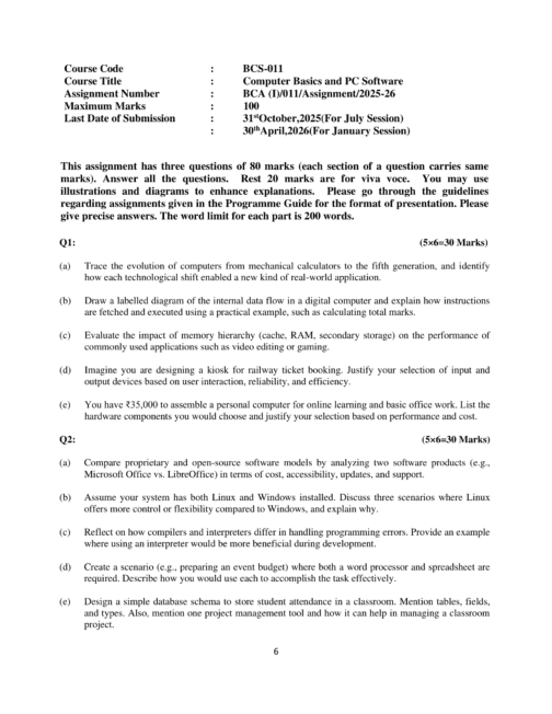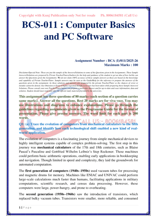 IGNOU BCS-011 SOLVED ASSIGNMENT 2025-26