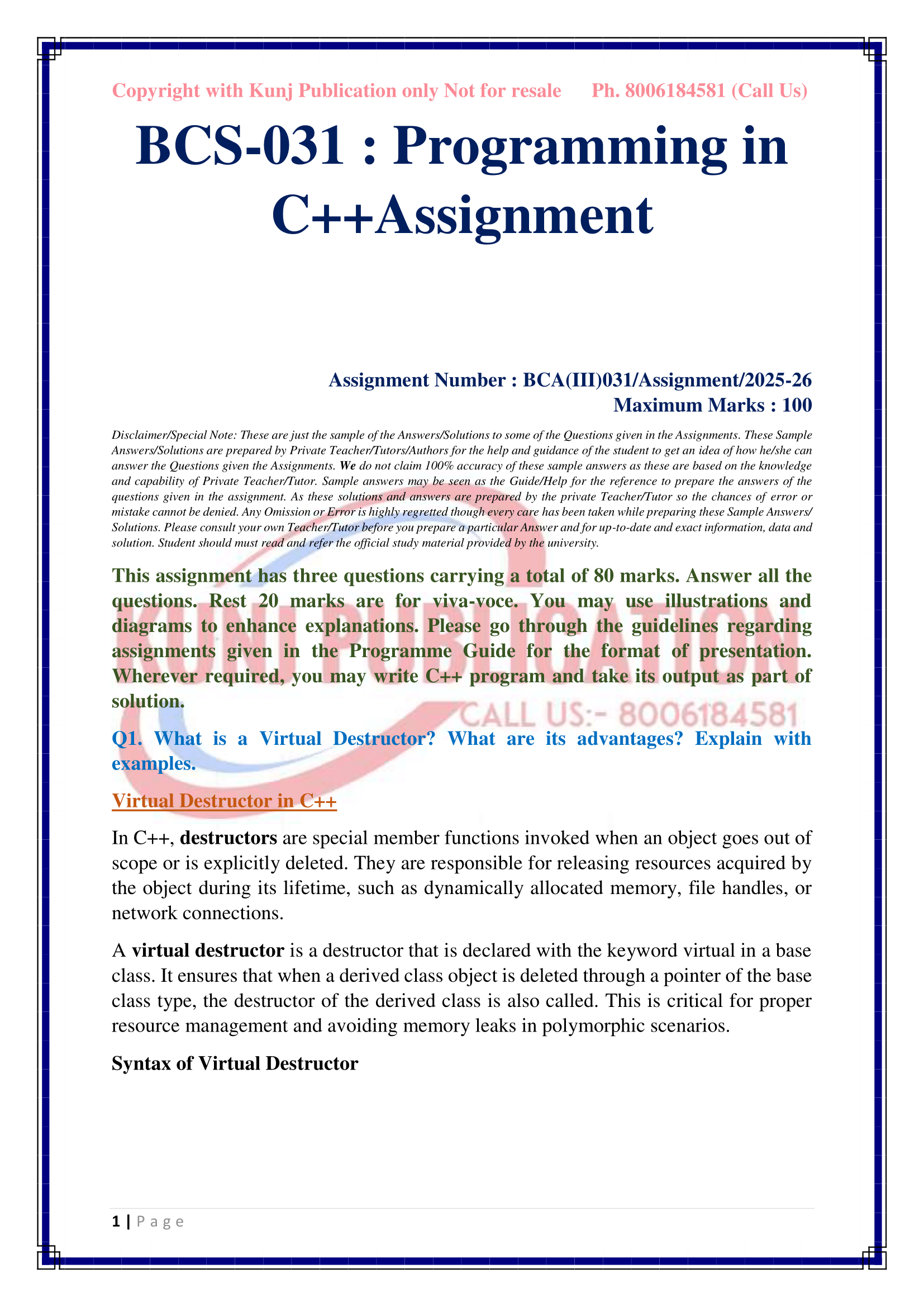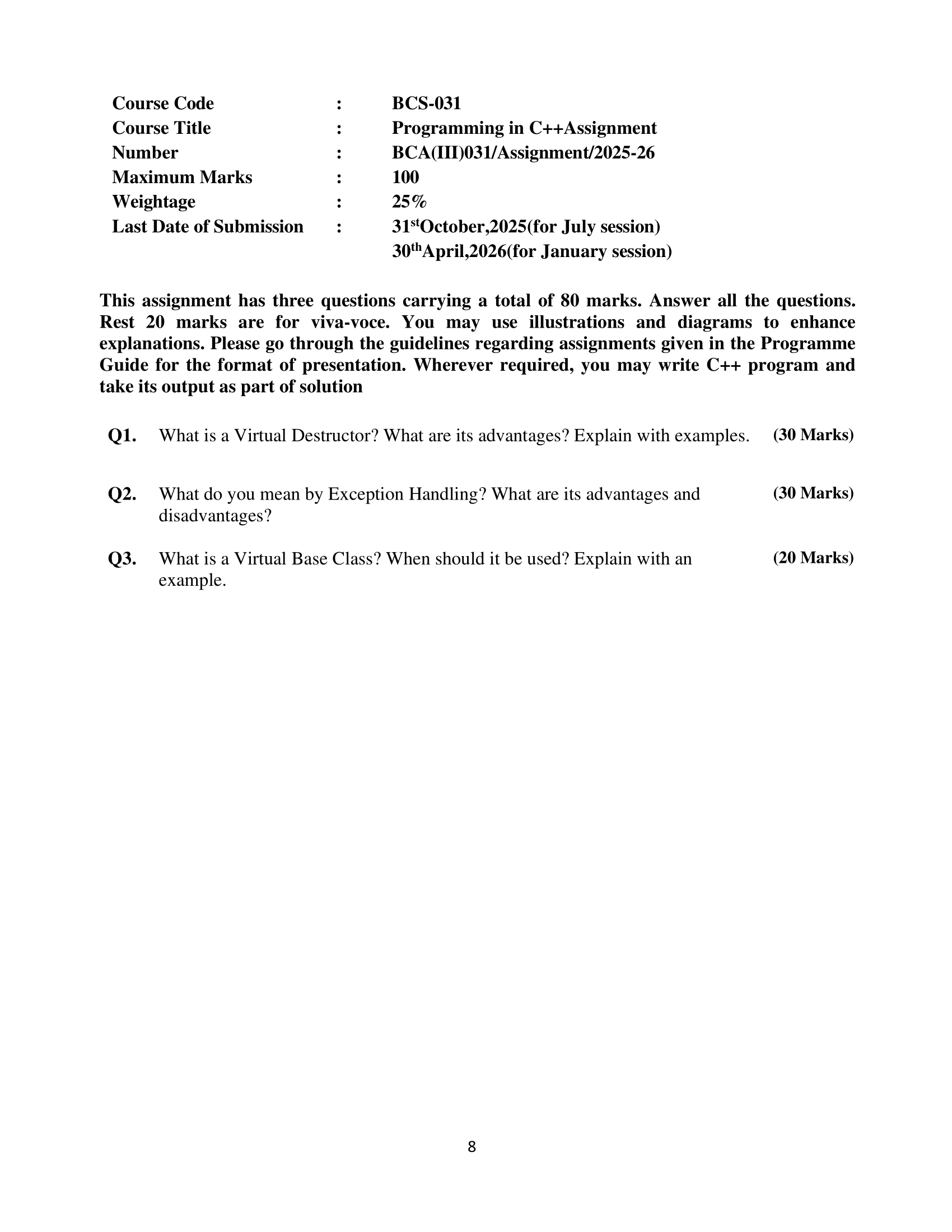 IGNOU BCS-031 SOLVED ASSIGNMENT 2025-26 ENGLISH MEDIUM