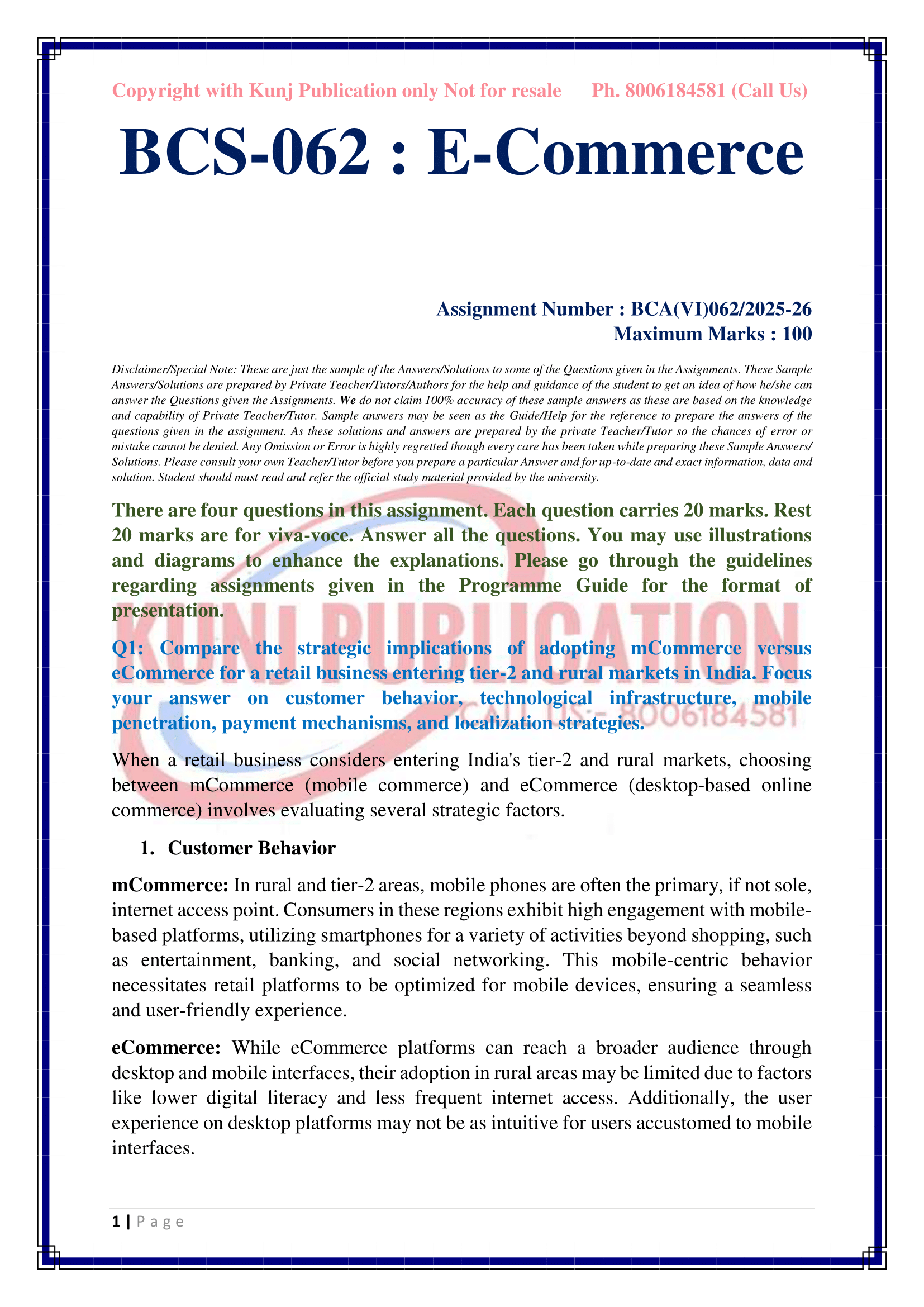 | Service Type | After successful payment, you will be redirected to the download page, now click on the download button and you will be able to download assignment solutions PDF file. You will also receive the download link on your mail. In addition, if you have any query or need any support please contact us on Kunjpublication20@gmail.com. |
