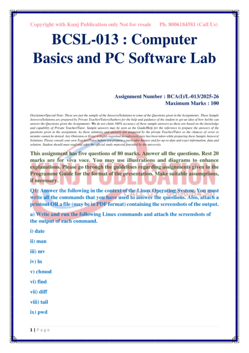 IGNOU BCSL-013 SOLVED ASSIGNMENT 2025-26 ENGLISH MEDIUM