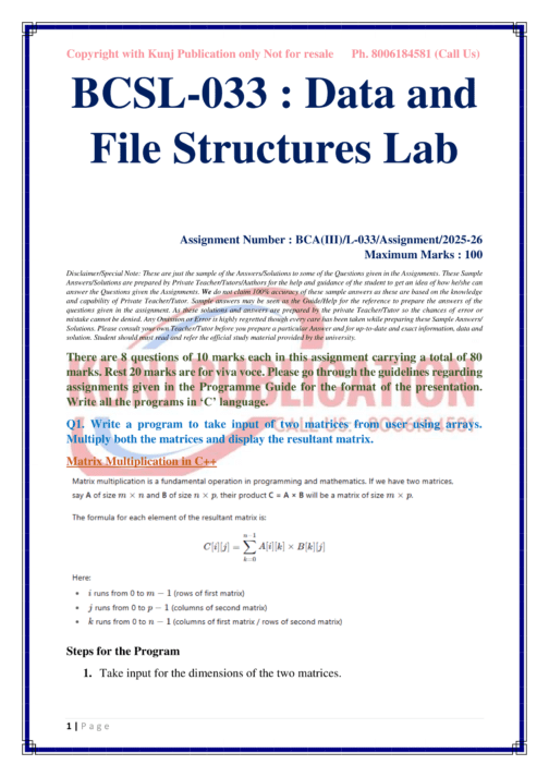 IGNOU BCSL-033 SOLVED ASSIGNMENT 2025-26 ENGLISH MEDIUM