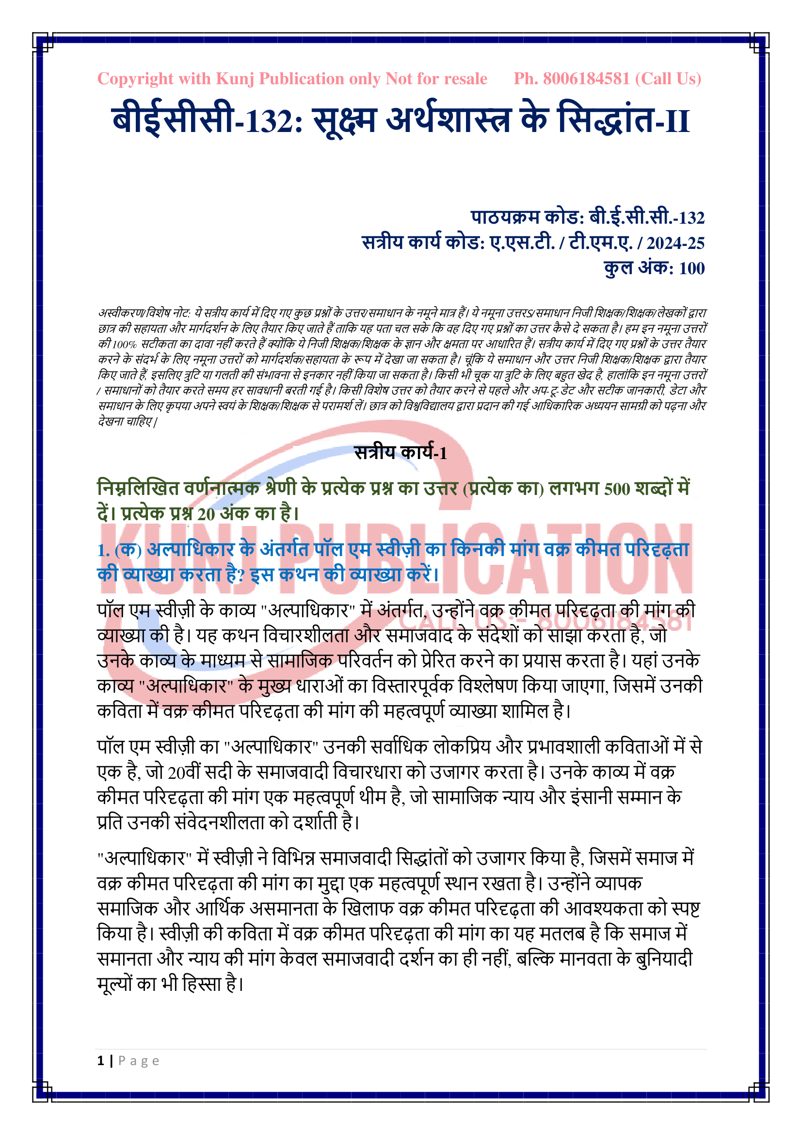 IGNOU BECC-132 SOLVED ASSIGNMENT 2024-25 HINDI MEDIUM