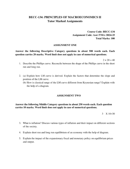 IGNOU BECC-134 SOLVED ASSIGNMENT 2024-25 ENGLISH MEDIUM