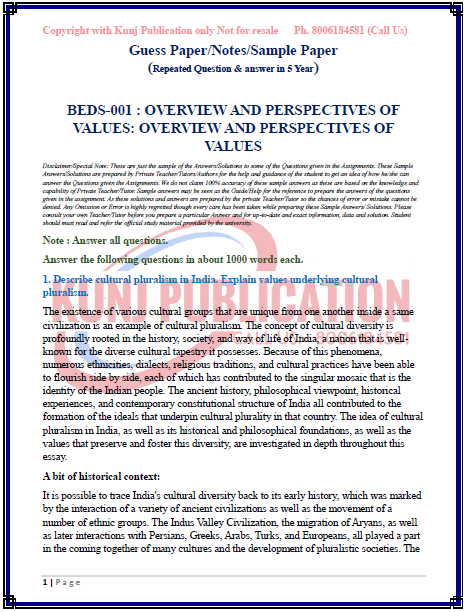 SERVICE TYPE | IGNOU Solved Guess paper/Notes/Sample Paper (Soft Copy/PDF) |