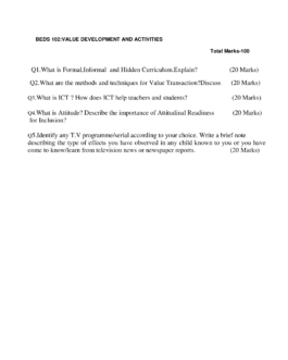 | Course | Diploma Programme in Value Education (DPVE) |
