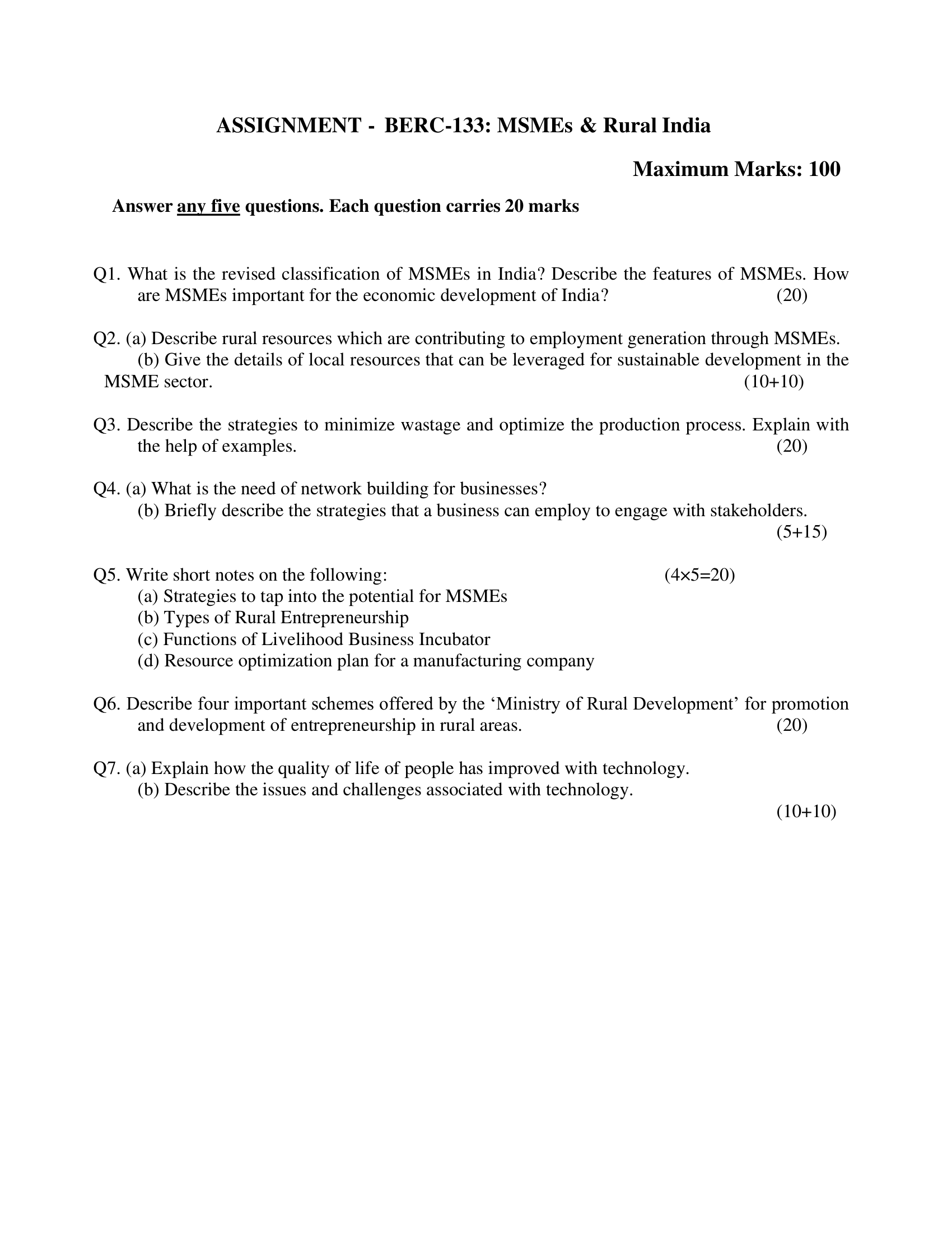 | Course | B.A (Vocational Studies) Micro Small and Medium Enterprises (BAVMSME) |