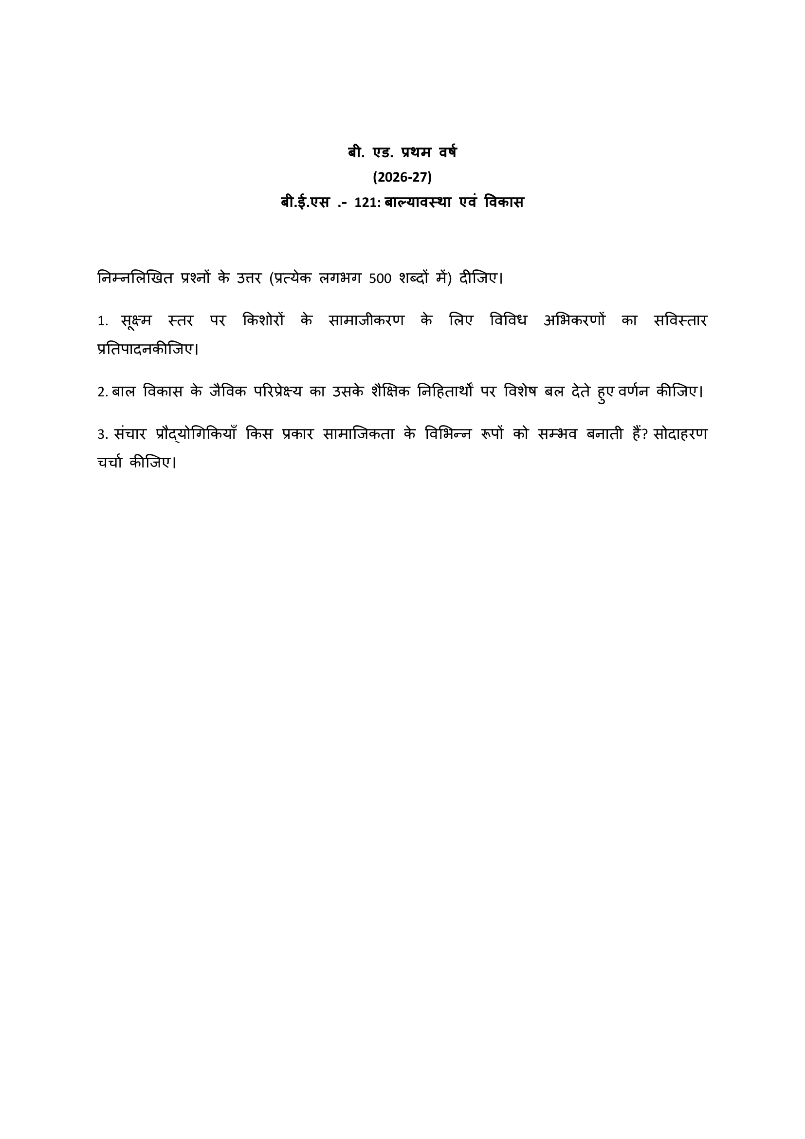 IGNOU BES-121 SOLVED ASSIGNMENT 2026-27 HINDI MEDIUM