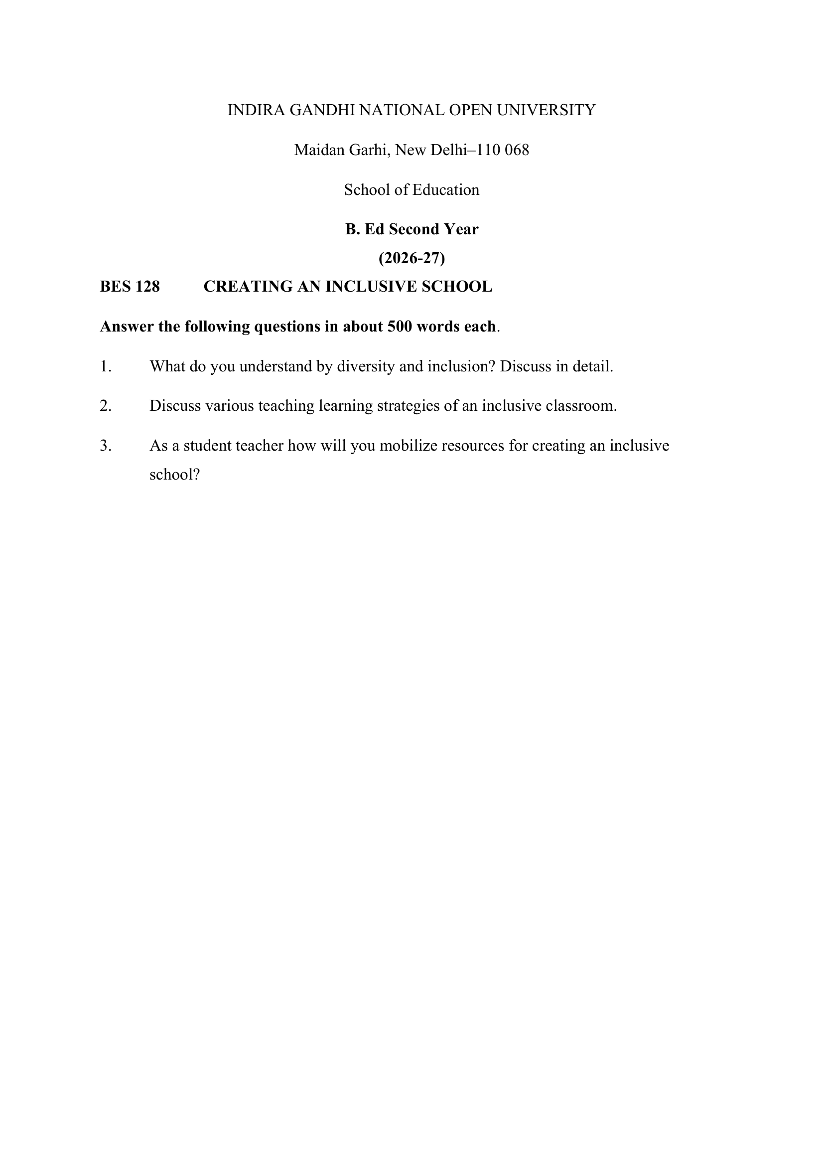 IGNOU BES-128 SOLVED ASSIGNMENT 2026-27 ENGLISH MEDIUM
