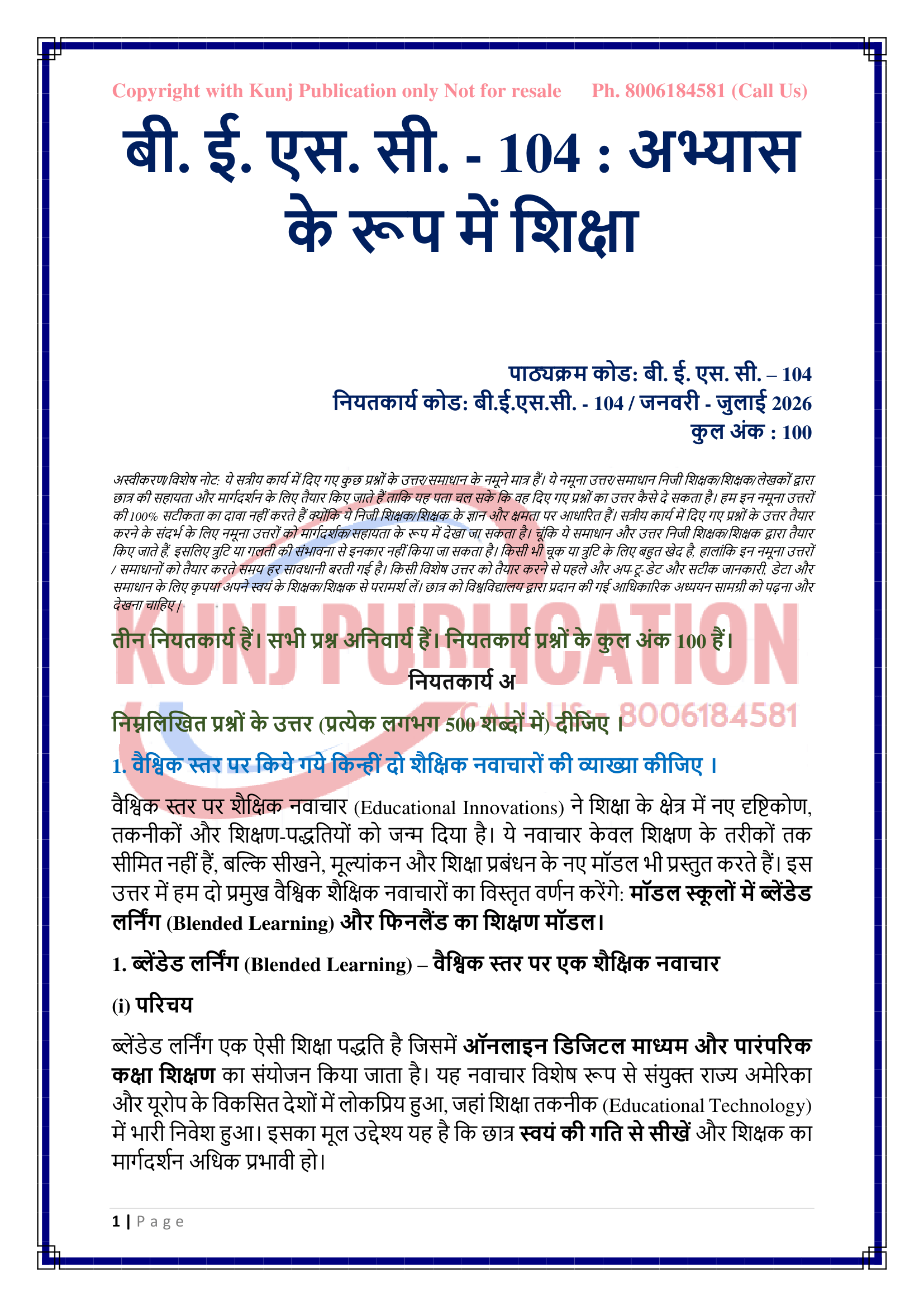 IGNOU BESC-104 SOLVED ASSIGNMENT 2026 HINDI MEDIUM