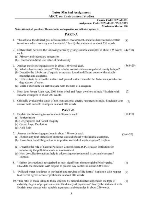 IGNOU BEVAE-181 SOLVED ASSIGNMENT 2025 ENGLISH MEDIUM