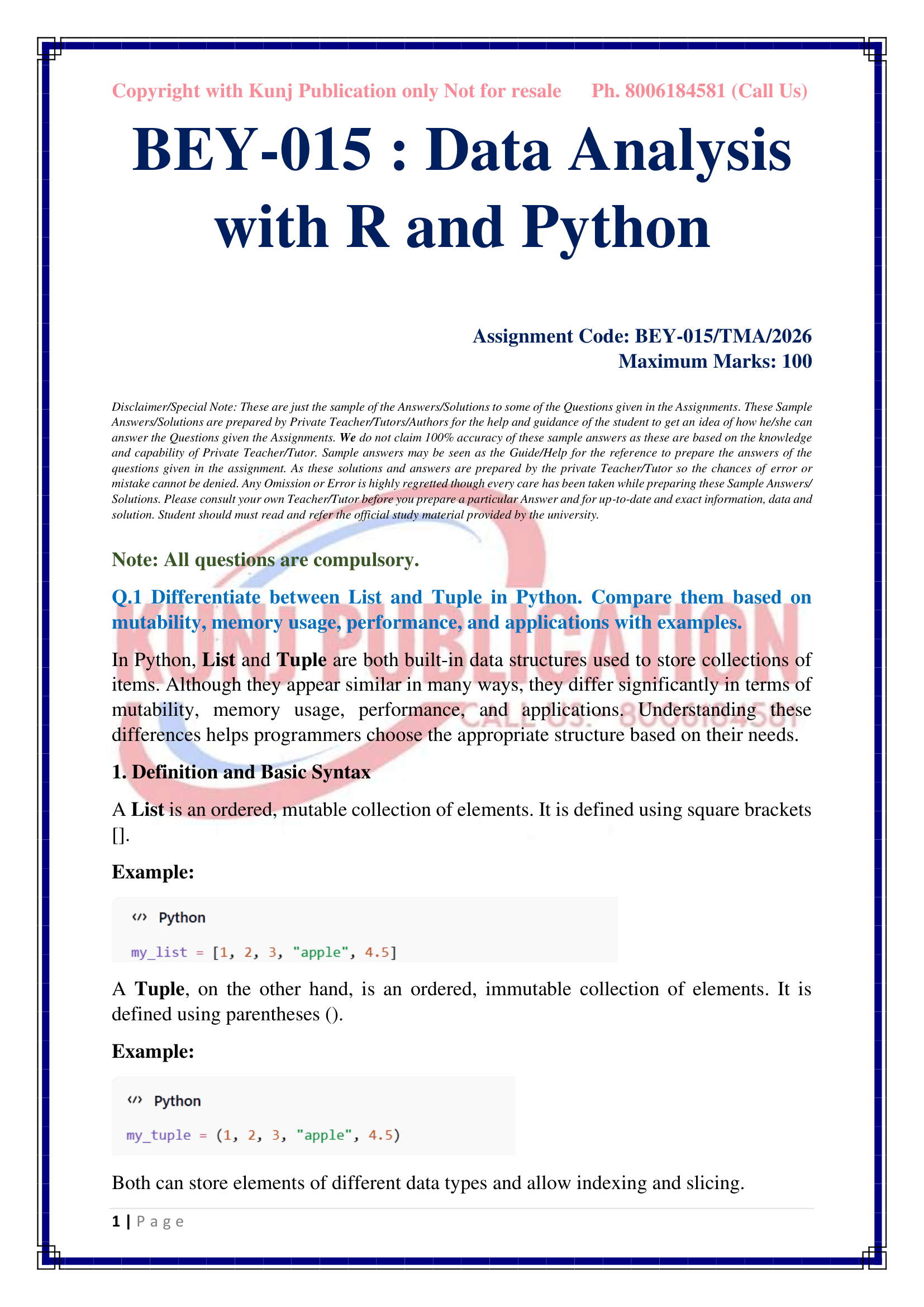 IGNOU BEY-015 SOLVED ASSIGNMENT 2026 ENGLISH MEDIUM