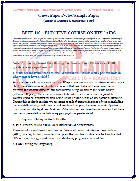 SERVICE TYPE | IGNOU Solved Guess paper/Notes/Sample Paper (Soft Copy/PDF) |