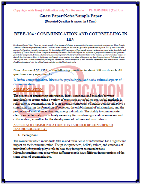 TITLE NAME | BFEE-104 Solved Guess Paper ENGLISH MEDIUM |