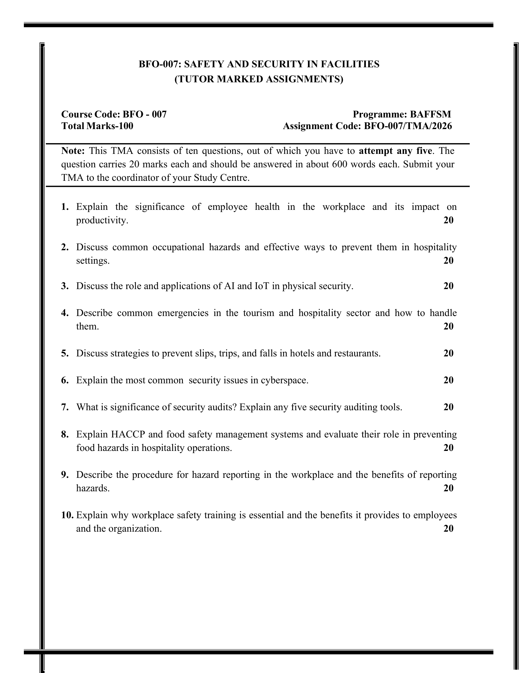 IGNOU BFO-007 SOLVED ASSIGNMENT 2026 ENGLISH MEDIUM