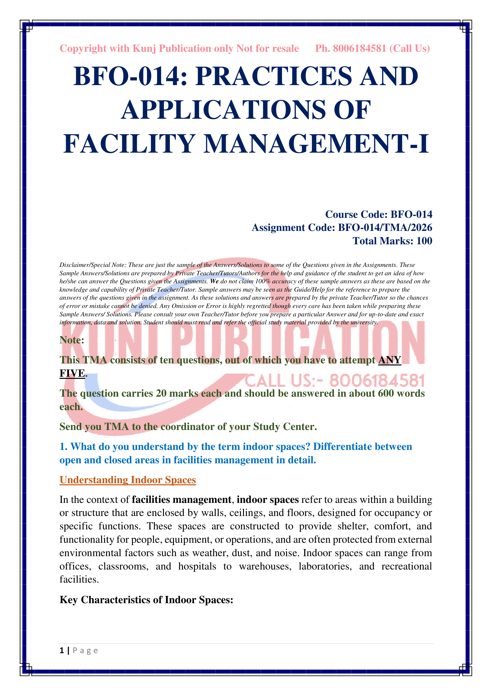 IGNOU BFO-014 SOLVED ASSIGNMENT 2026 ENGLISH MEDIUM