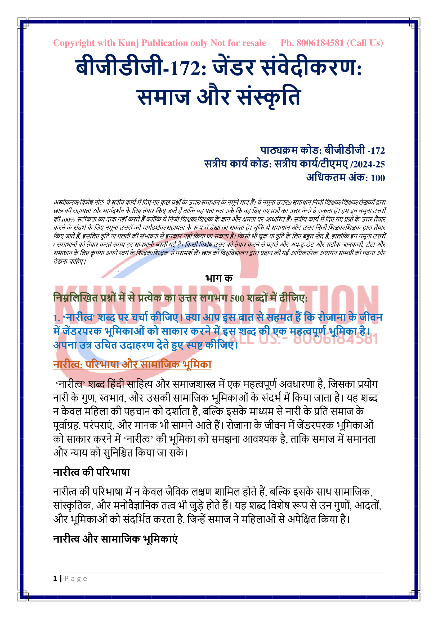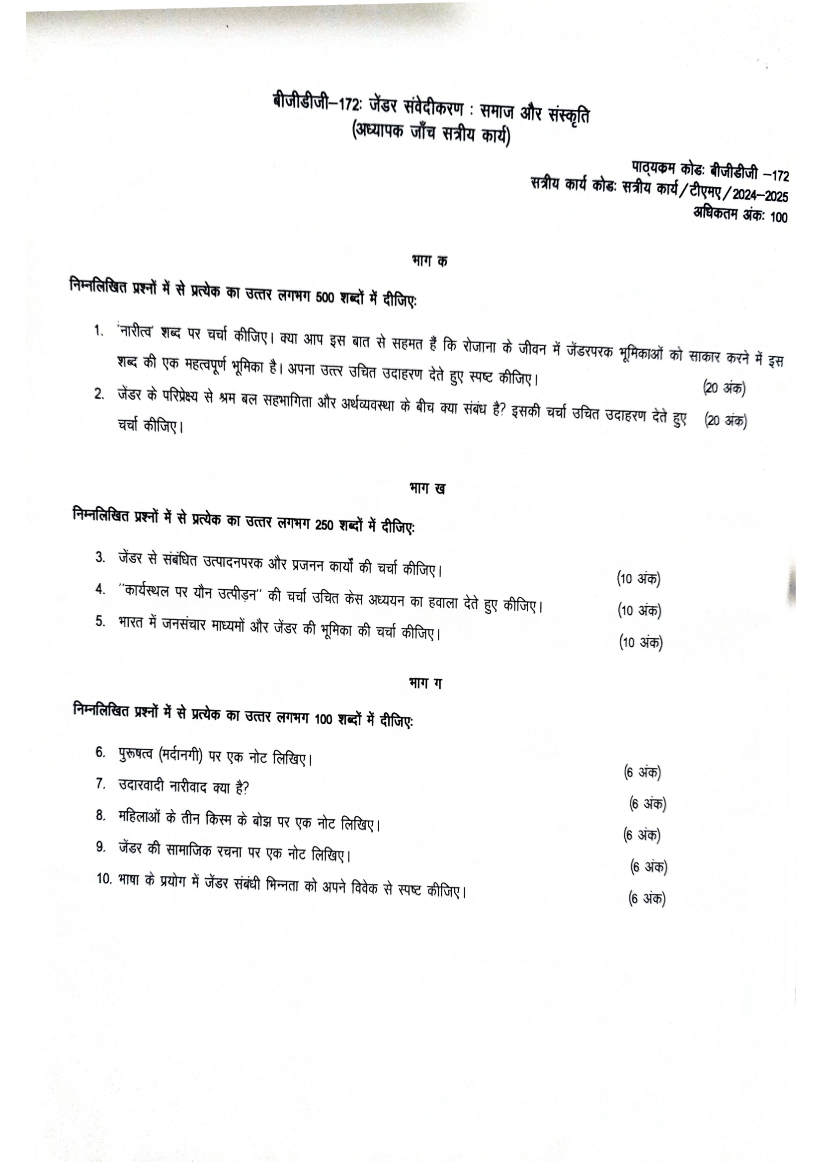 IGNOU BGDG-172 SOLVED ASSIGNMENT 2024-25 HINDI MEDIUM