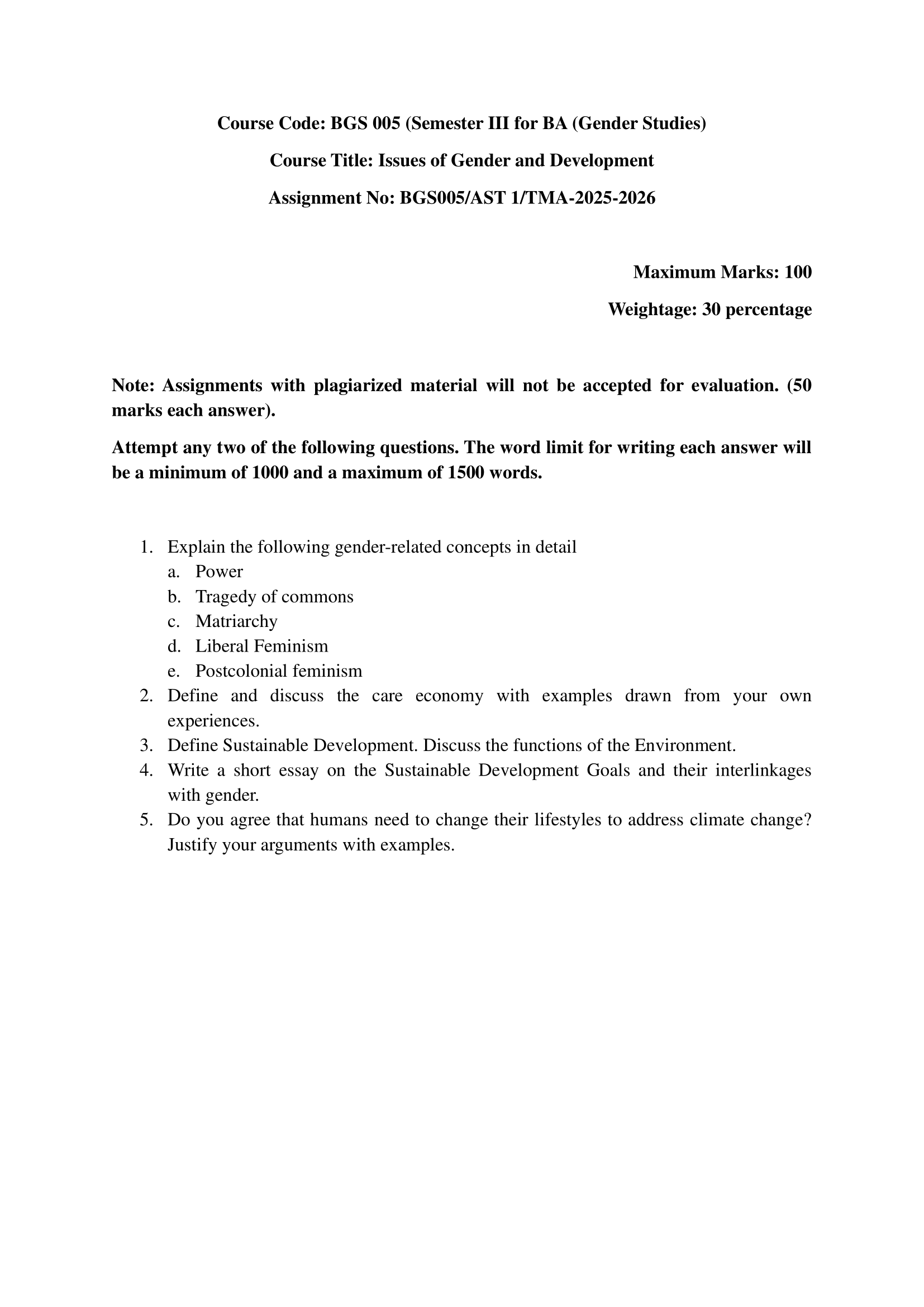 IGNOU BGS-005 SOLVED ASSIGNMENT 2025-26 ENGLISH MEDIUM