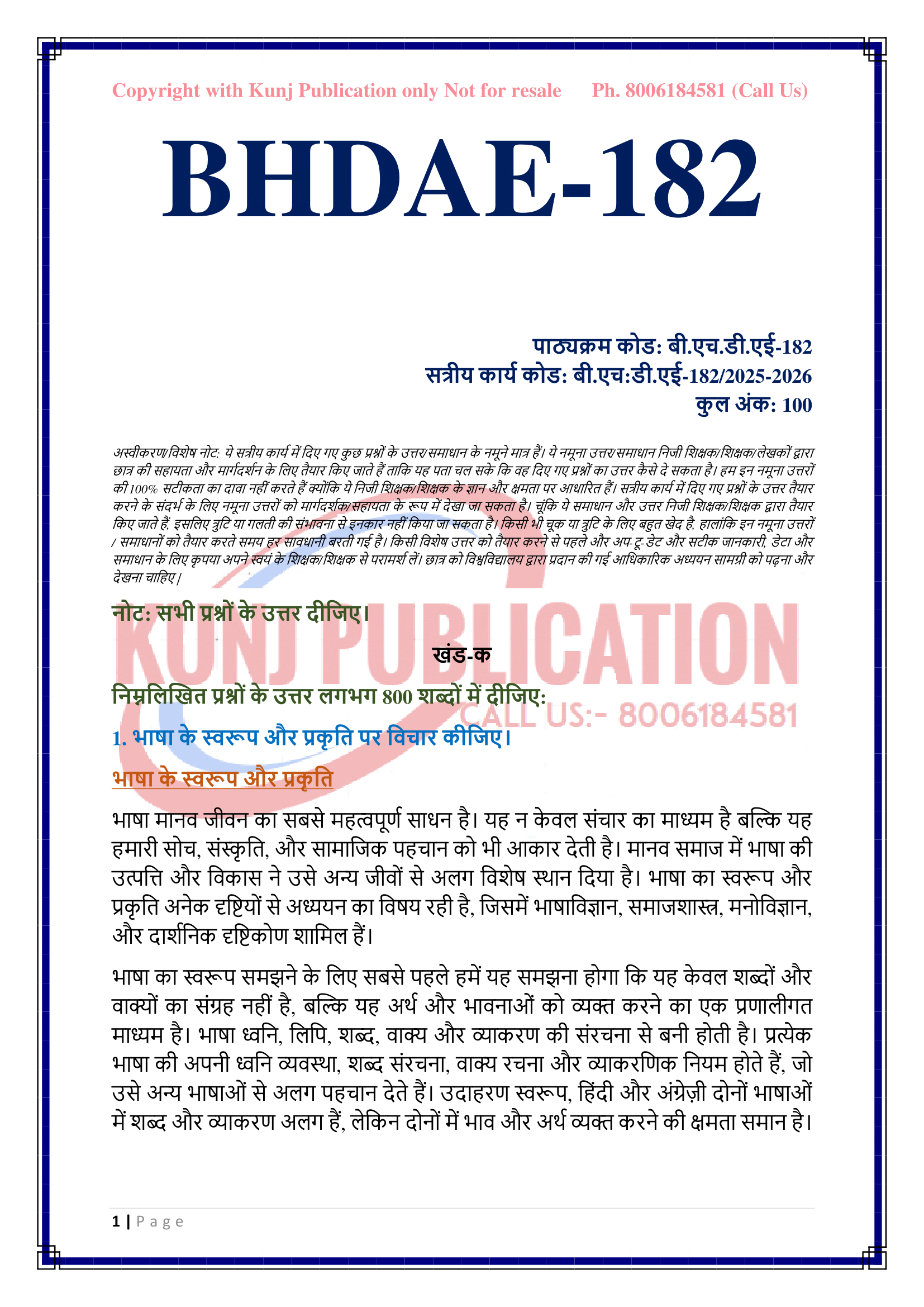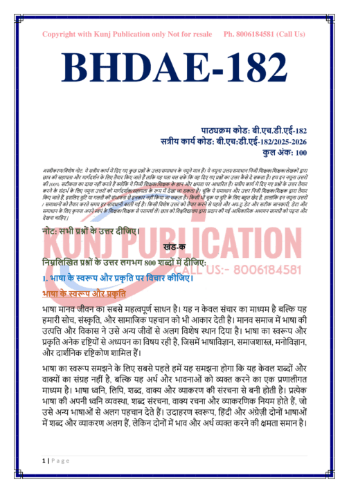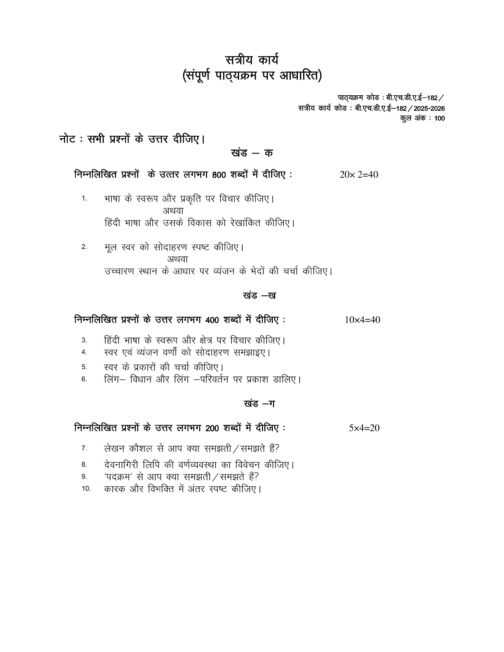 IGNOU BHDAE-182 SOLVED ASSIGNMENT 2025-26 HINDI MEDIUM