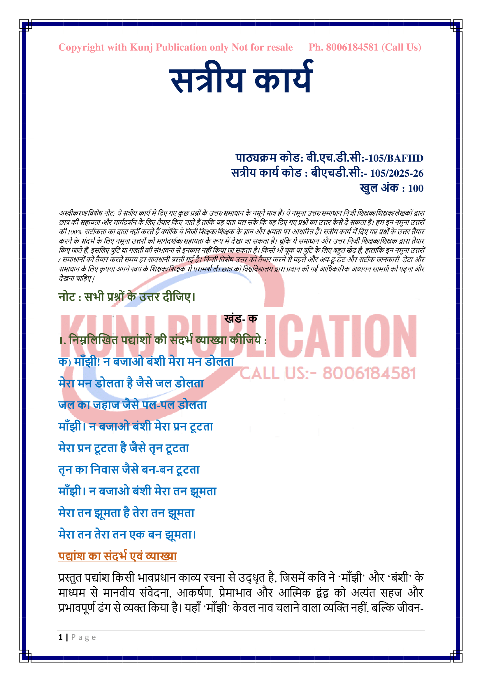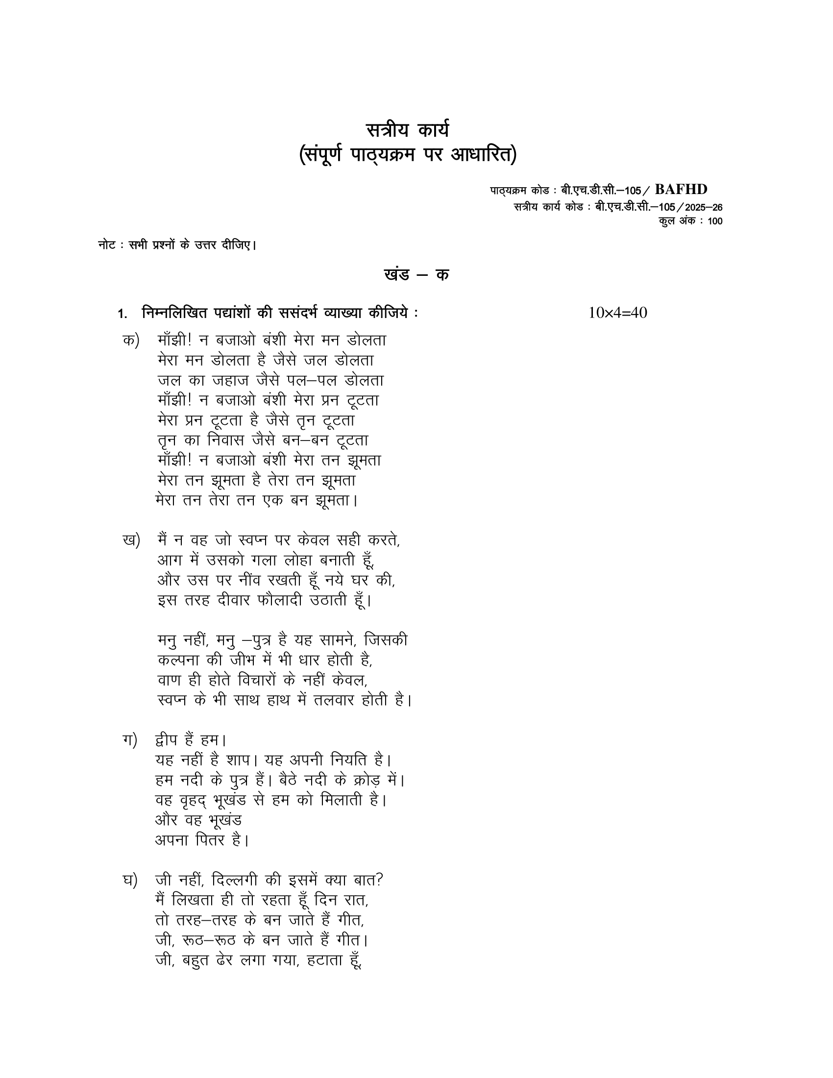 IGNOU BHDC-105 SOLVED ASSIGNMENT 2025-26 HINDI MEDIUM