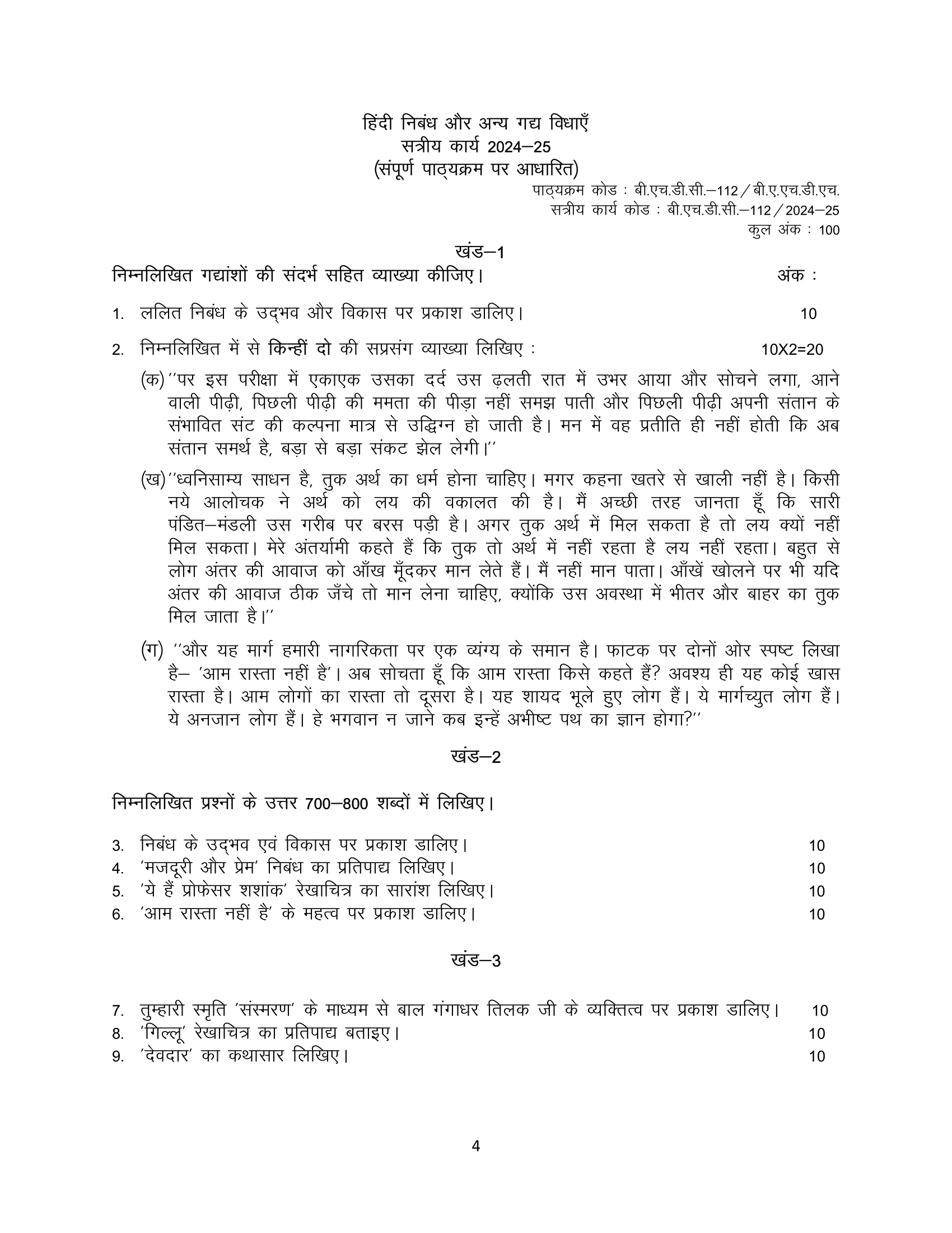 | Course | Bachelor’s Honours Degree Programme (Hindi) (BAHDH) |