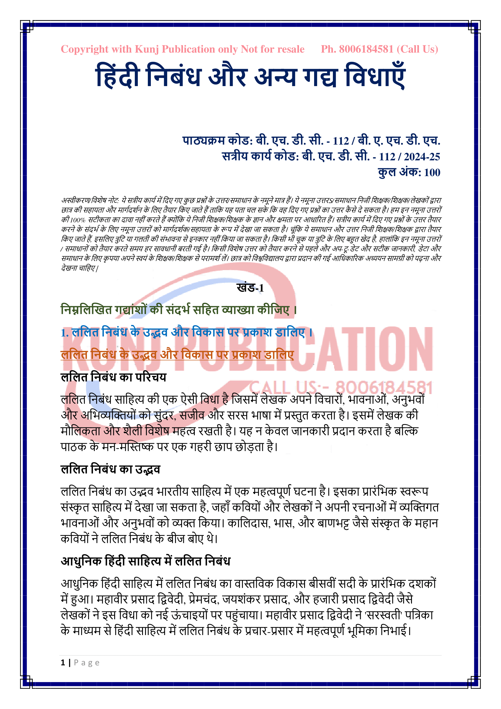 IGNOU BHDC-112 SOLVED ASSIGNMENT 2024-25 HINDI MEDIUM