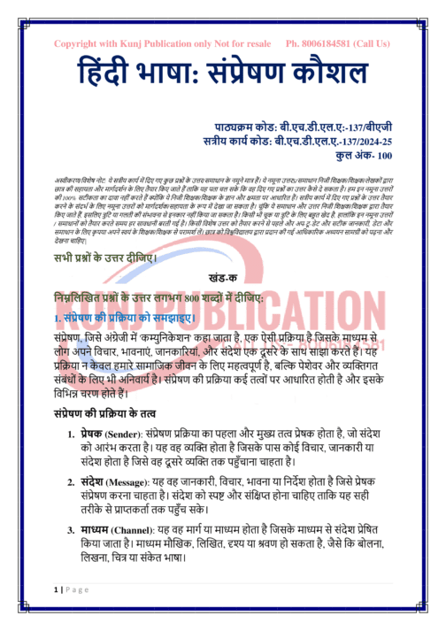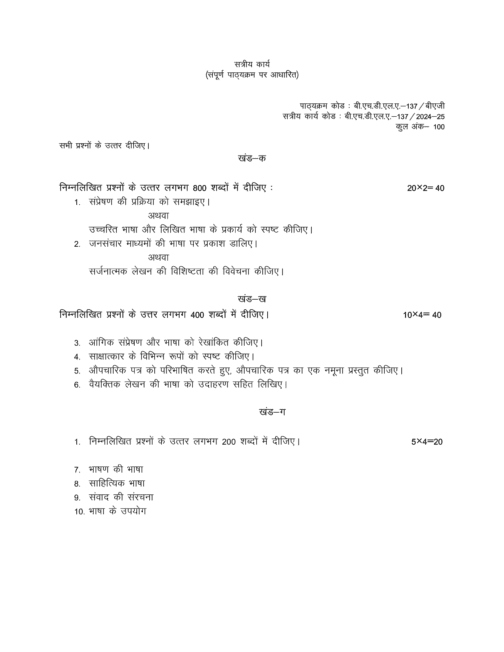 IGNOU BHDLA-137 SOLVED ASSIGNMENT 2024-25 HINDI MEDIUM