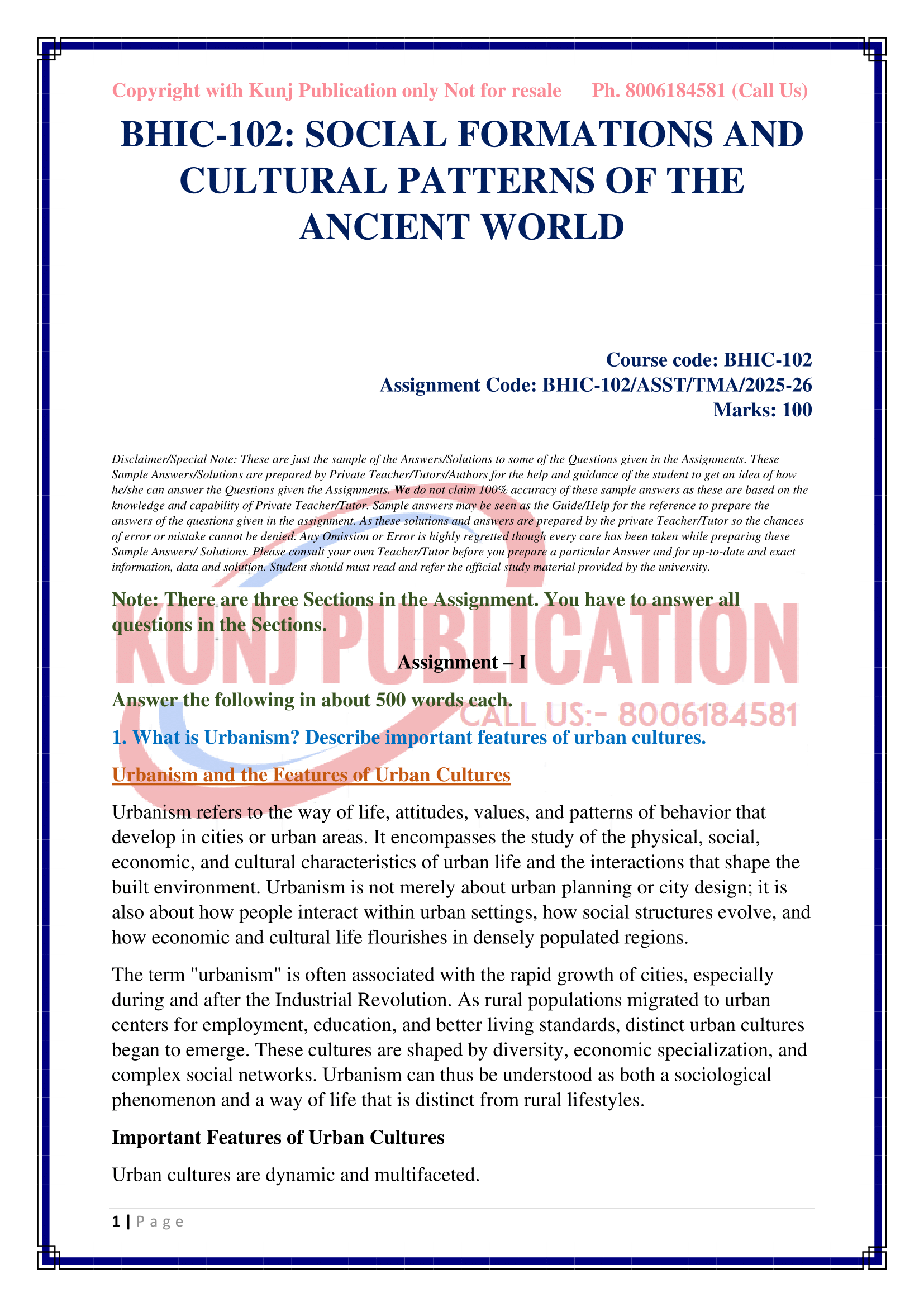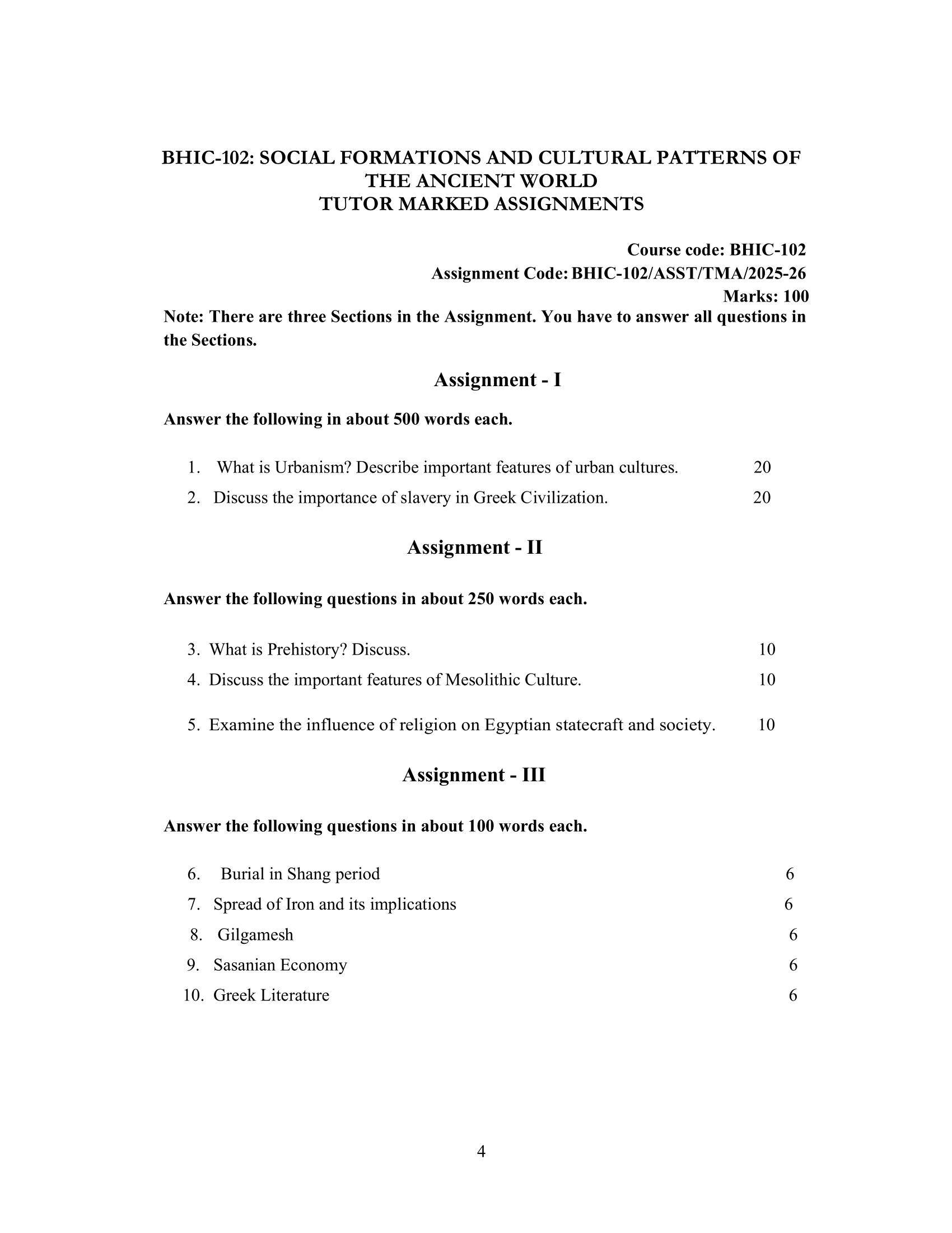 IGNOU BHIC-102 SOLVED ASSIGNMENT 2025-26 ENGLISH MEDIUM