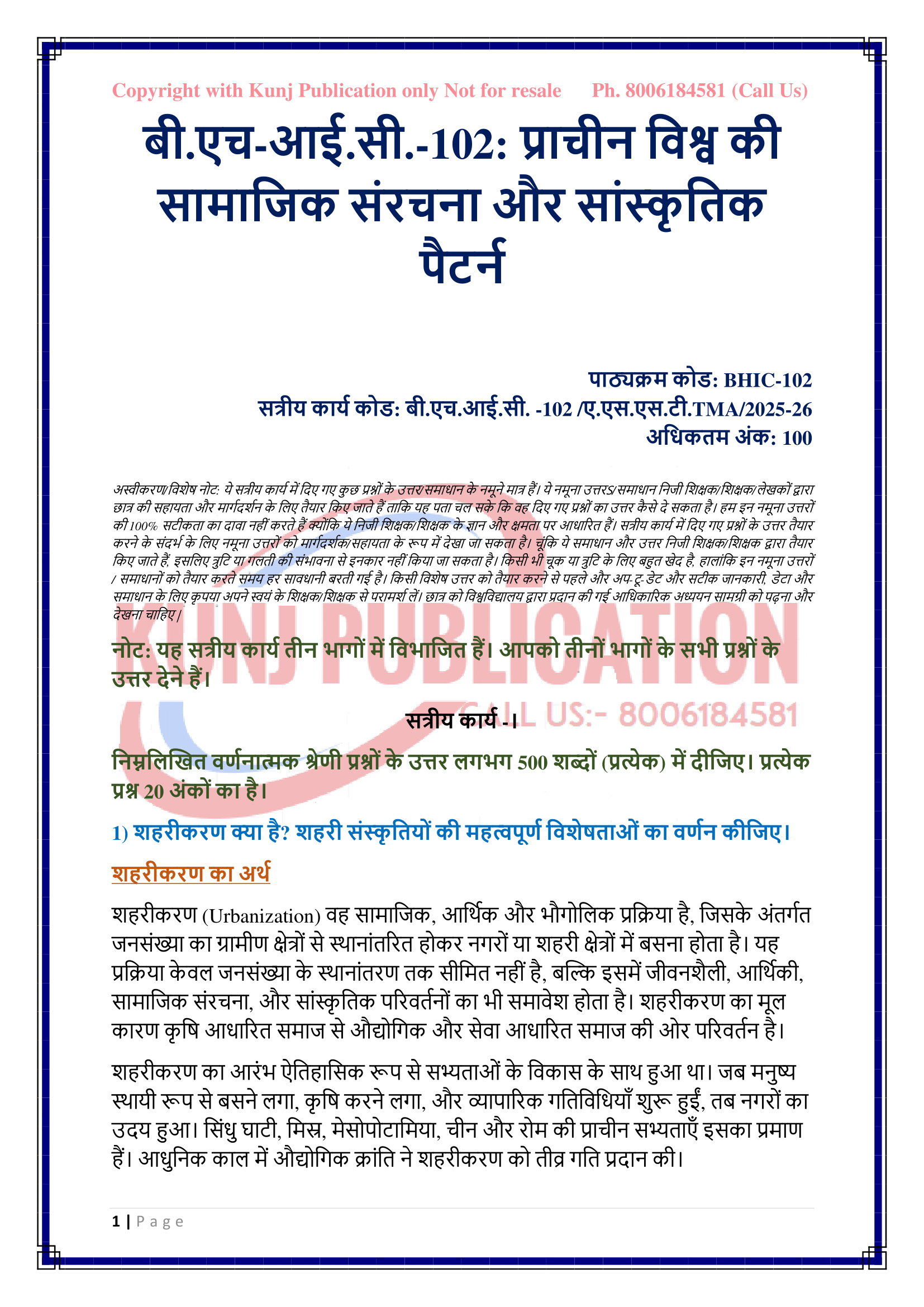 IGNOU BHIC-102 SOLVED ASSIGNMENT 2025-26 HINDI MEDIUM