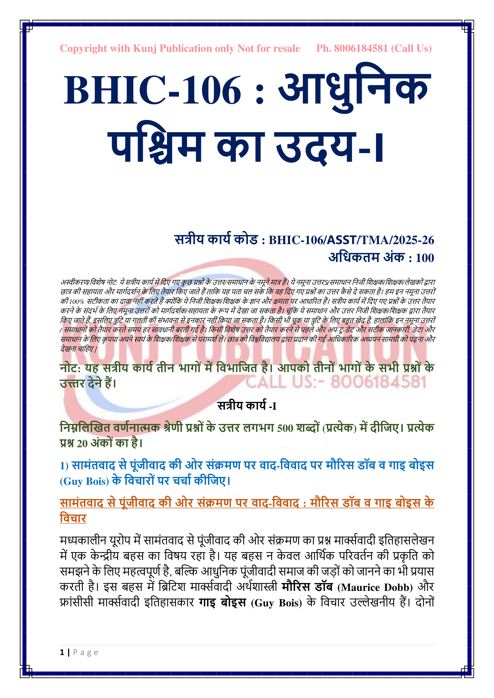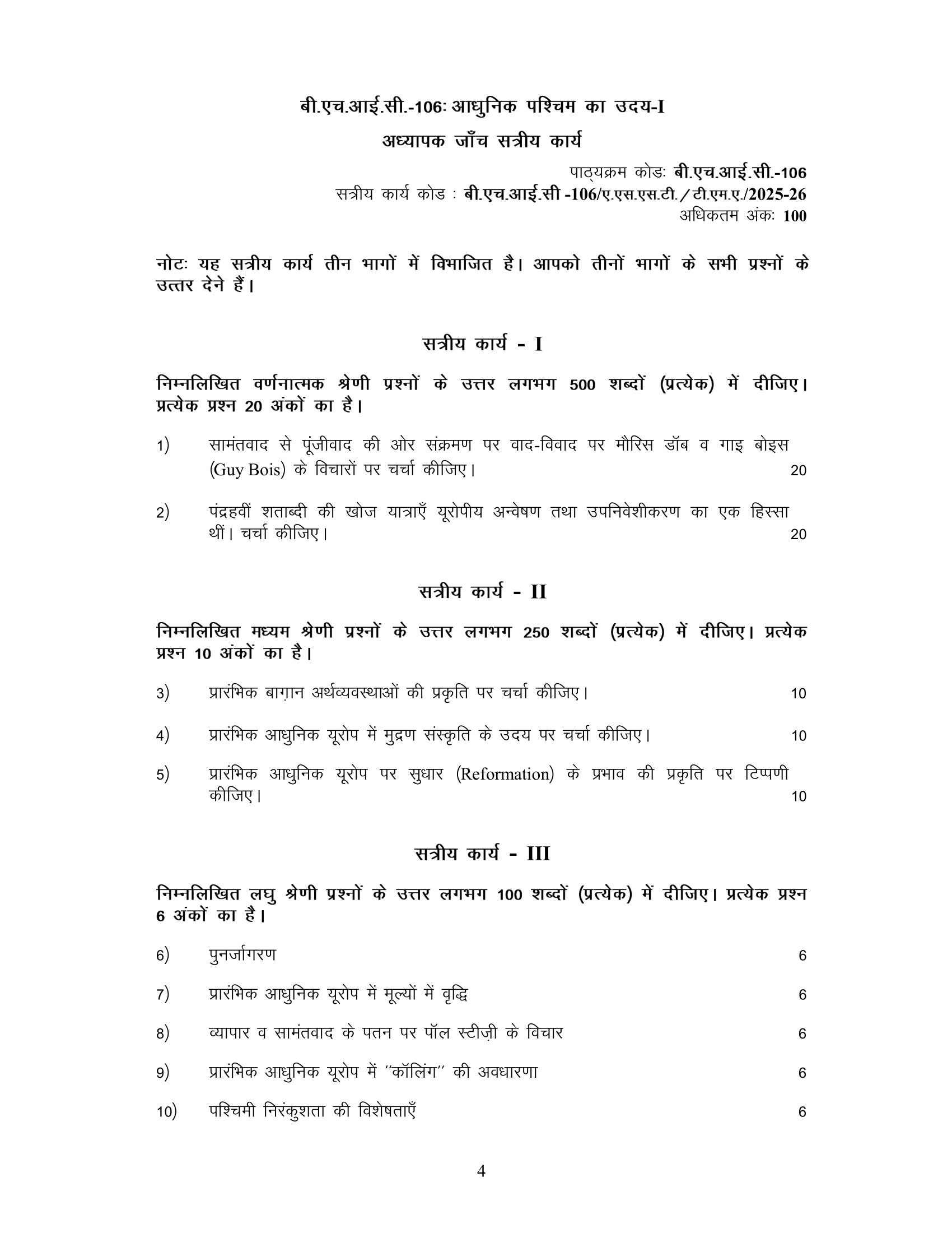 IGNOU BHIC-106 SOLVED ASSIGNMENT 2025-26 HINDI MEDIUM