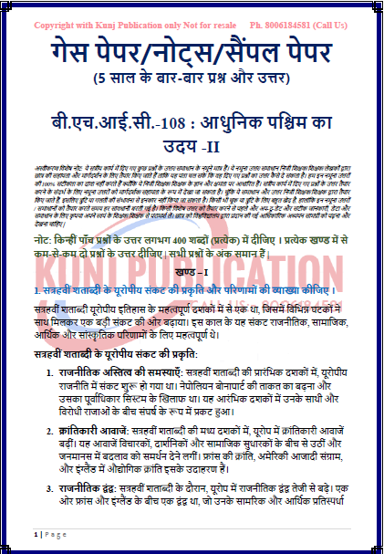 IGNOU BHIC-108 SOLVED GUESS PAPER/NOTES/SAMPLE PAPER HINDI MEDIUM