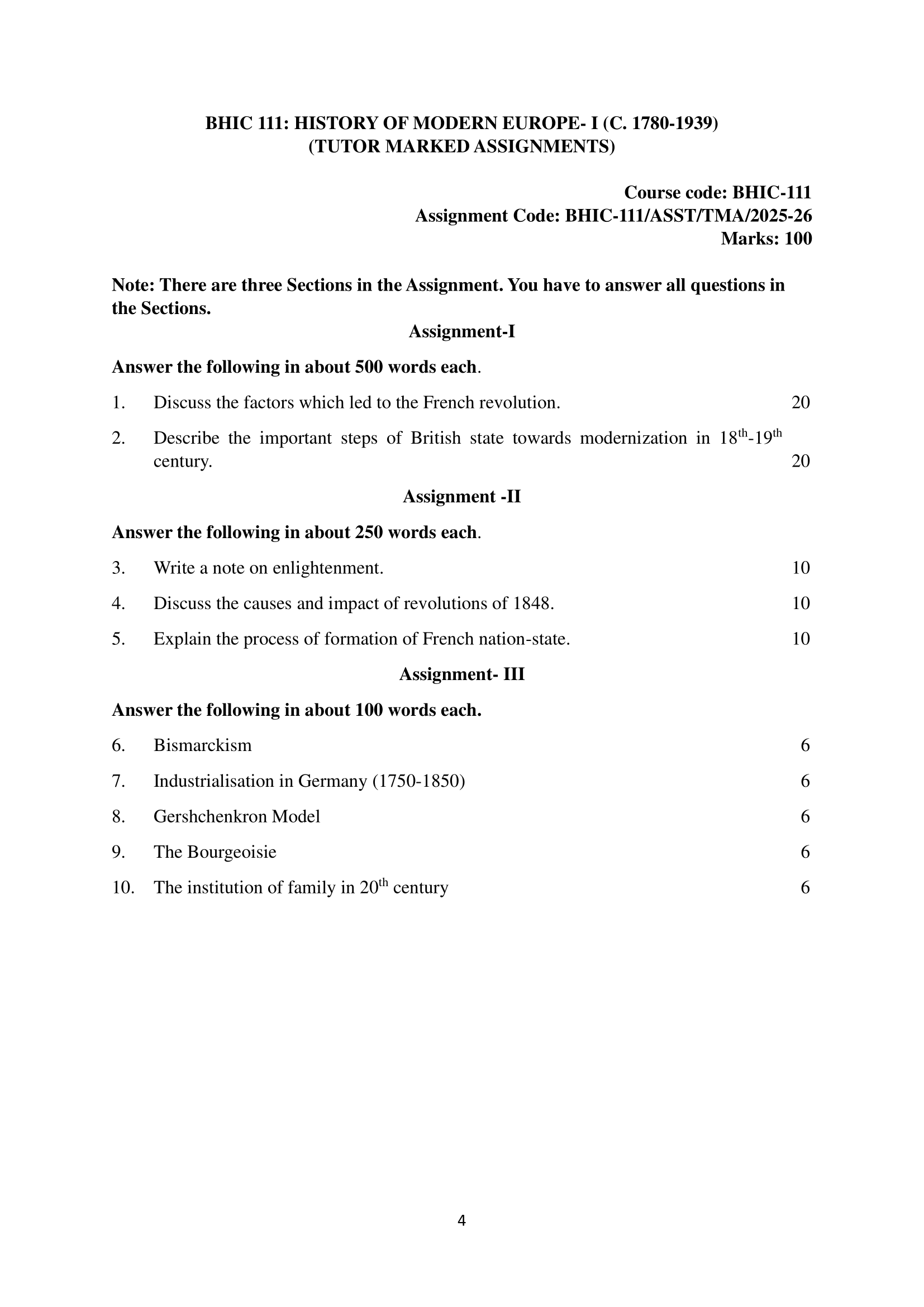 Title History of Modern Europe – I (c. 1780 – 1939)