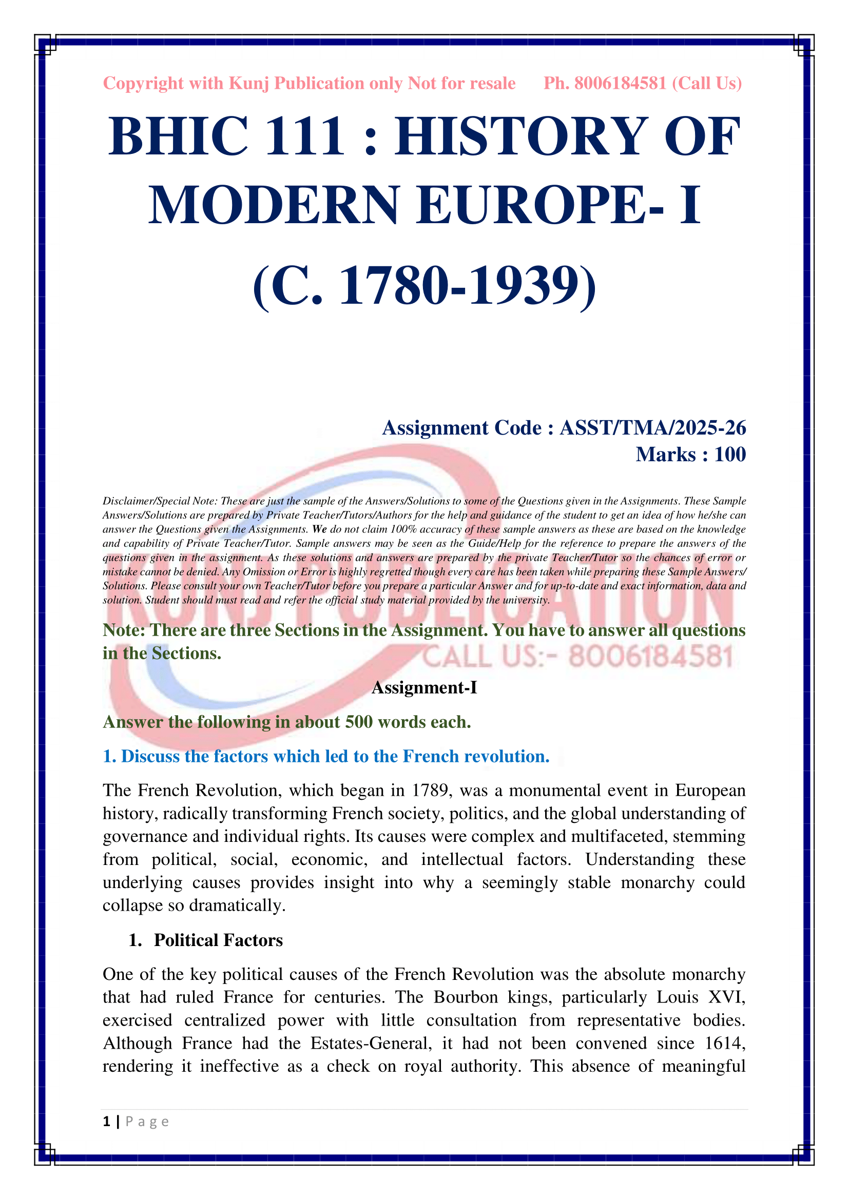 IGNOU BHIC-111 SOLVED ASSIGNMENT 2025-26 ENGLISH MEDIUM